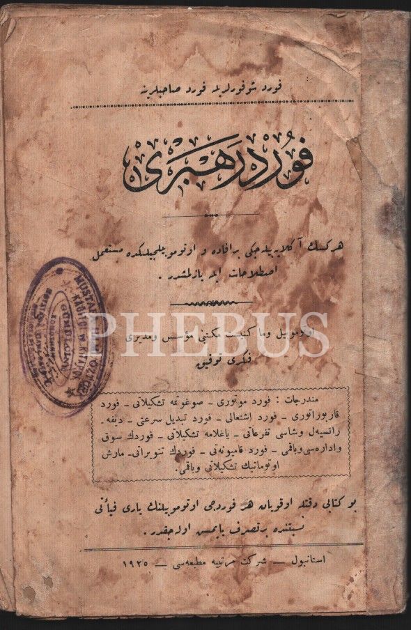 Ulaşım tarihi: Ford Şoförleriyle Ford Sahiblerine FORD REHBERİ, Fikri Tevfik, Şirket-i Mürettibiye Matbaası, İstanbul 1925, 131 s., 13x19 cm
