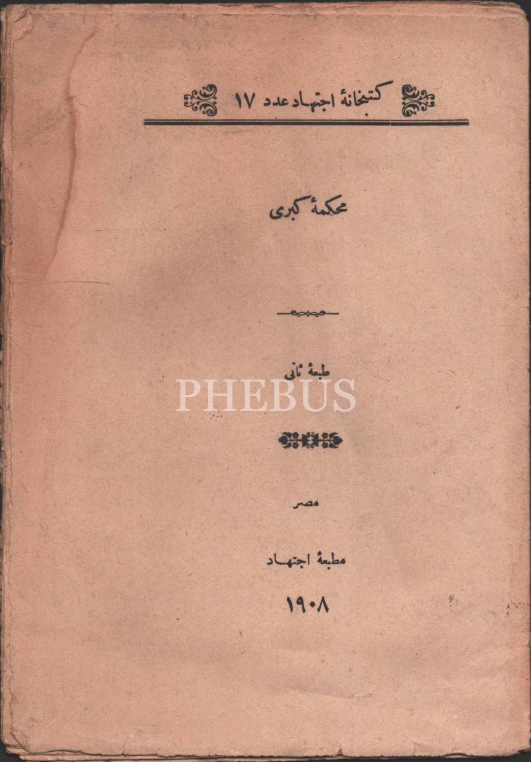 MAHKEME-İ KÜBRÂ, İctihad Matbaası, Mısır 1908, 31 s., 14x21 cm