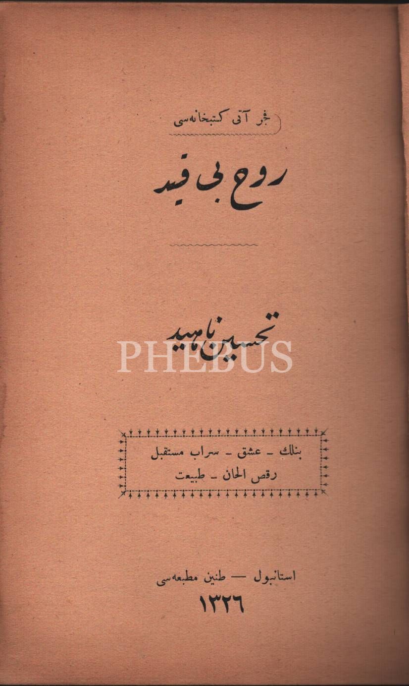 Edebiyat tarihi: RÛH-İ BÎ-KAYD [Şiir], Tahsin Nahid, Tanin Matbaası, İstanbul 1326, 157 s., 12x18 cm