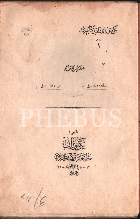 Edebiyat tarihi: MUAZZEZ VATANA [Şiir], Salime Servet Seyfi-Ali Rıza Seyfi, Yeni Turan Matbaası, İstanbul, 68 s., 13x20 cm