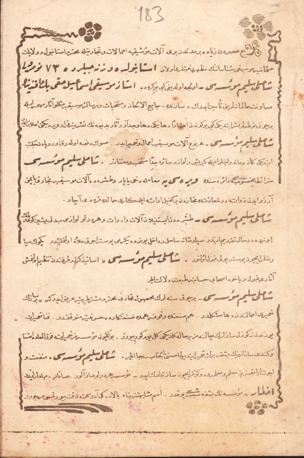 Musuki Risalesi, Hicaz Şarkı, no: 32, ed., Şamlı Selim, İstanbul,14x21 cm