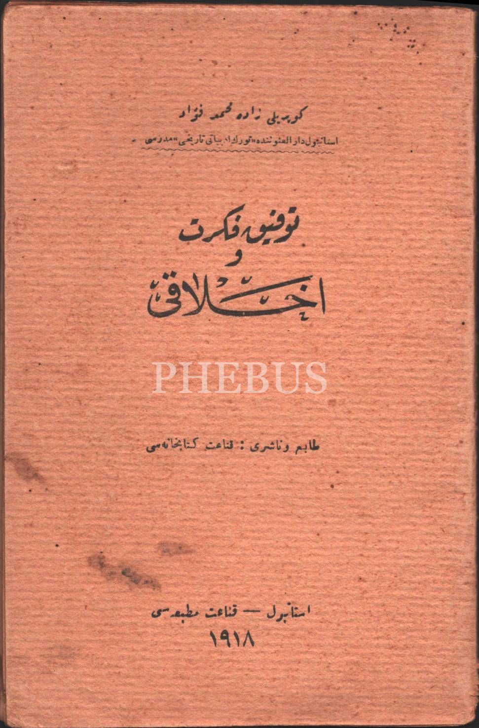 Edebiyat tarihi: TEVFİK FİKRET VE AHLÂKI, Köprülüzâde Mehmed Fuad, Kanaat Matbaası, İstanbul 1918, 40 s., 12x18 cm