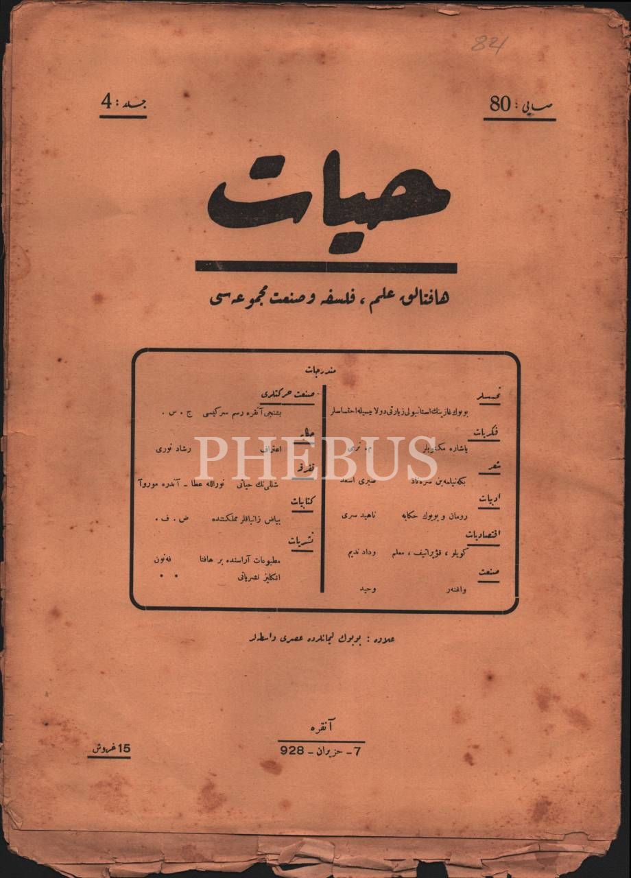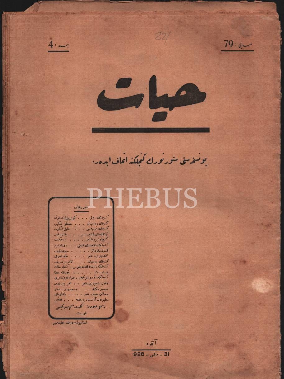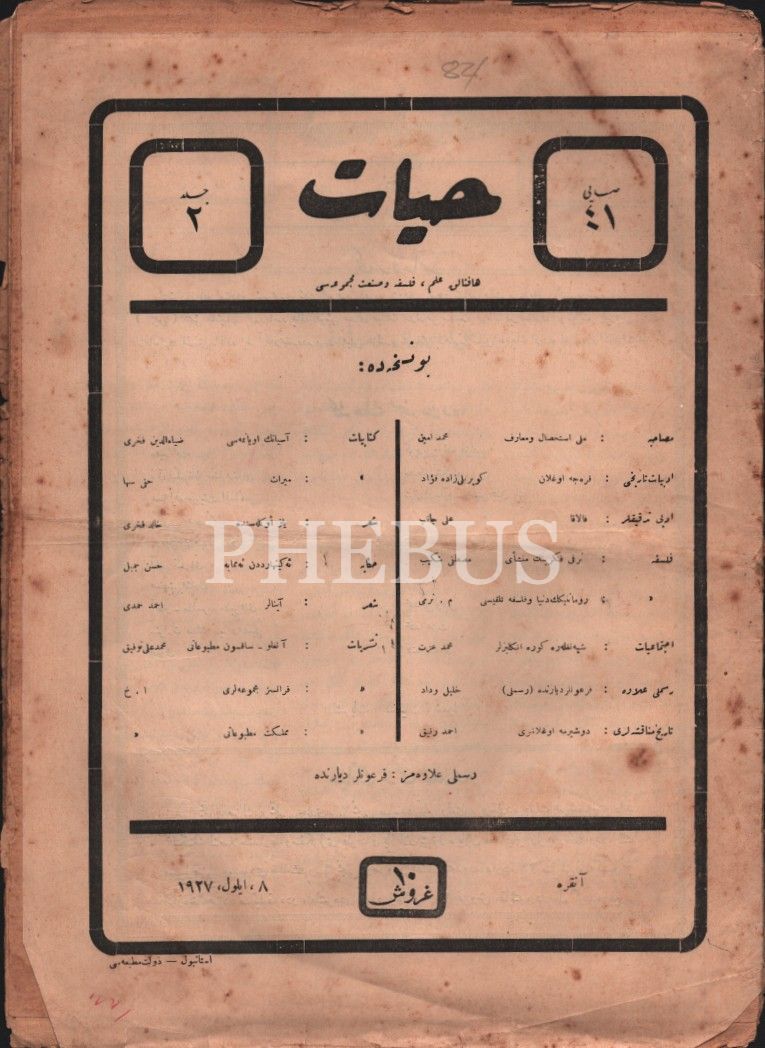Kültür tarihi: İlim, felsefe ve sanat dergisi HAYAT´ın 1927-28 yıllarında yayımlanmış 6 sayısı, 25x34 cm