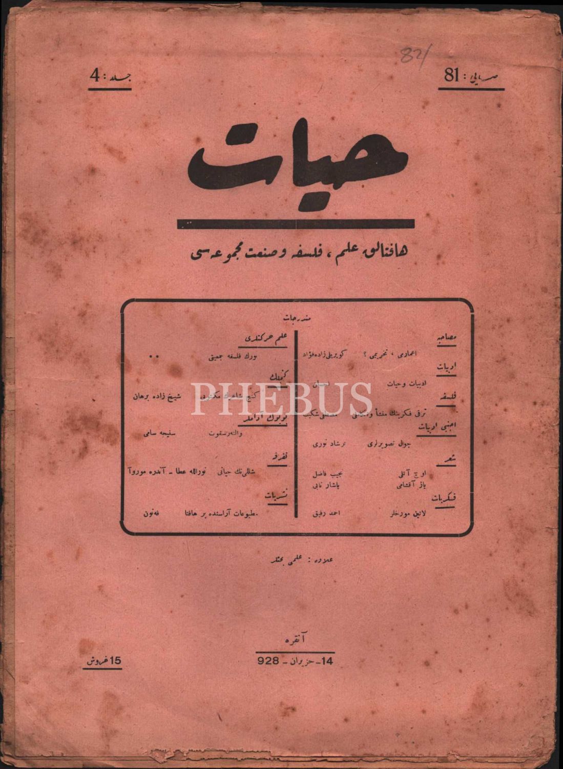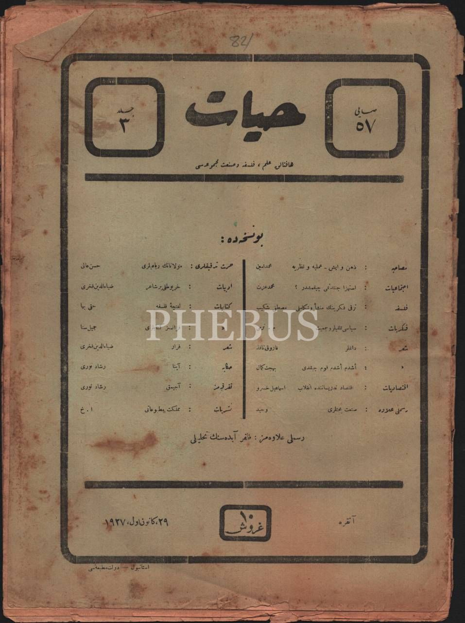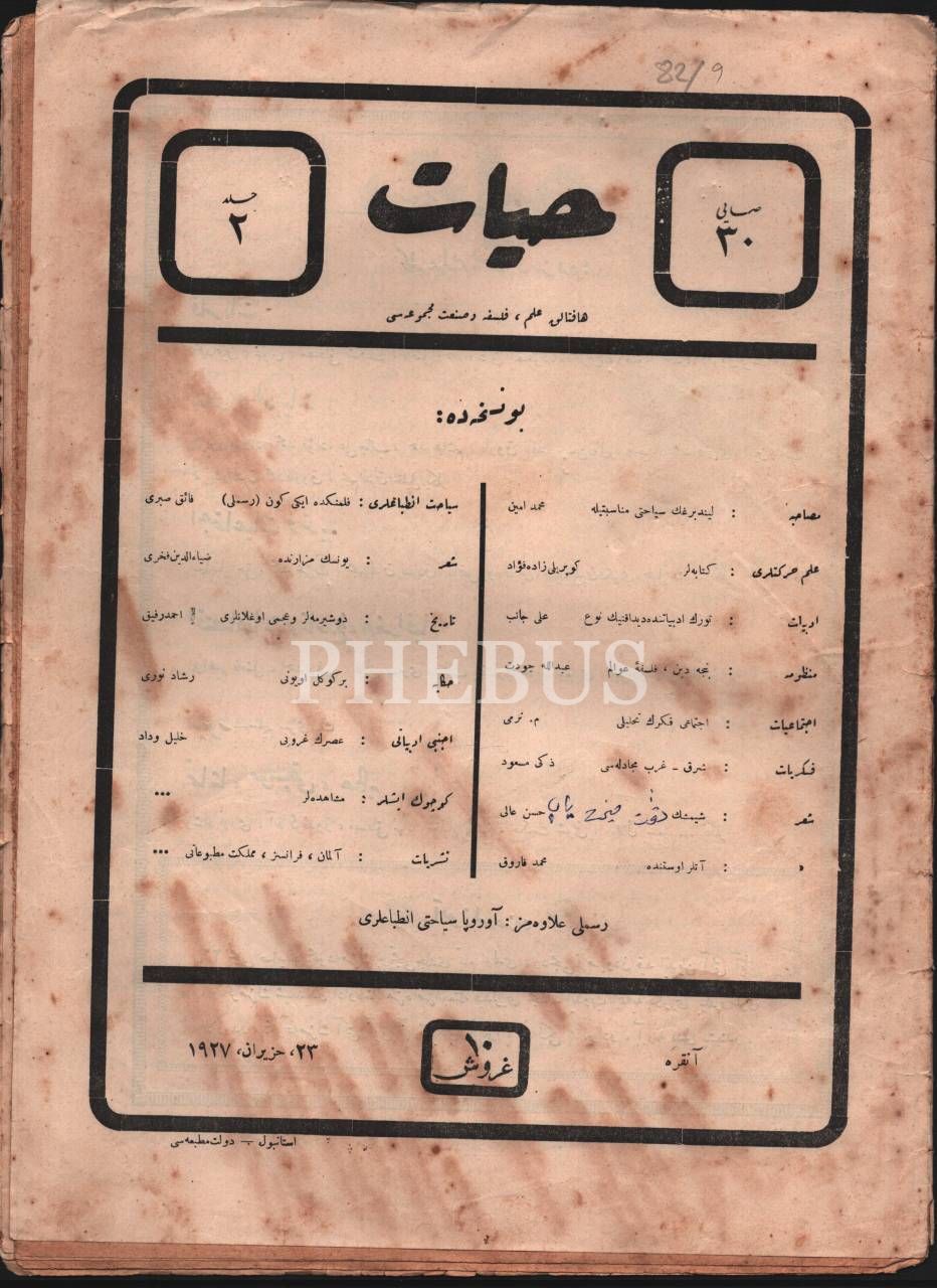 Kültür tarihi: İlim, felsefe ve sanat dergisi HAYAT´ın 1927-28 yıllarında yayımlanmış 6 sayısı, 25x34 cm