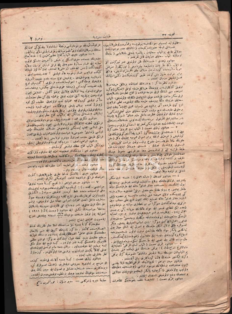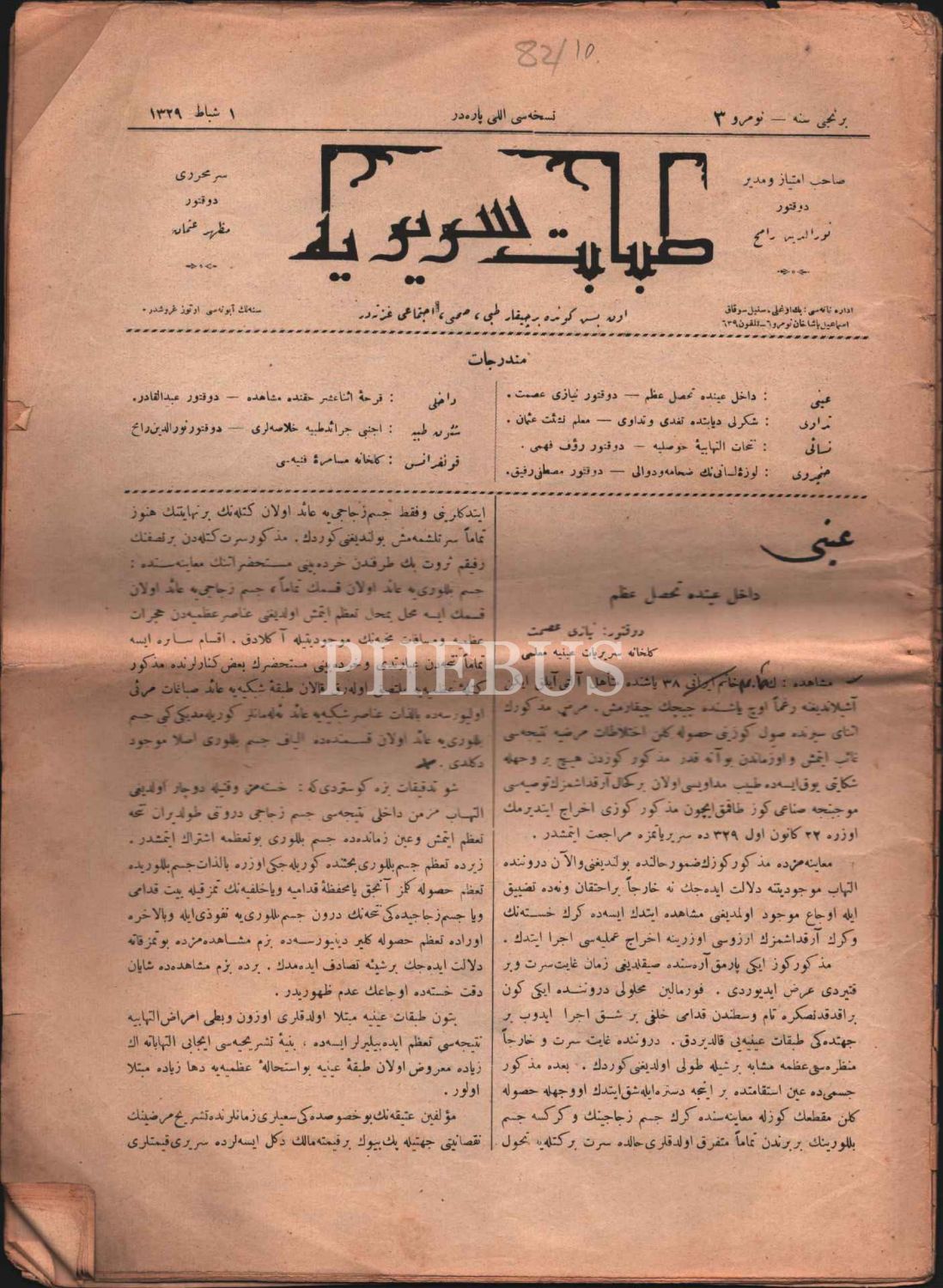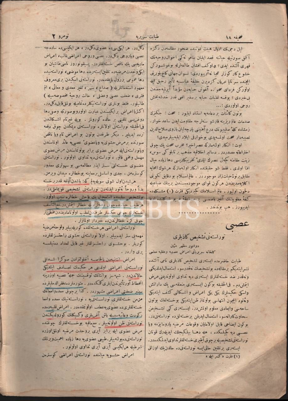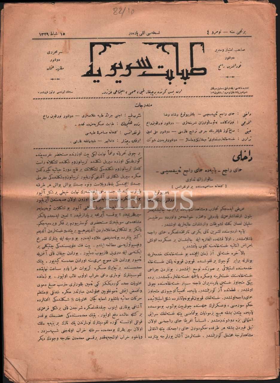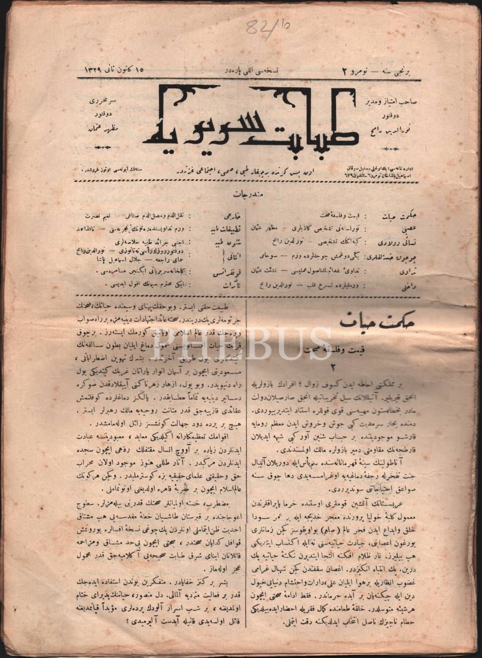Tıp tarihi: Tıbbi, sıhhi ve ictimai gazete TABABET-İ SERİRİYYE´nin 1329 yılında yayımlanmış 2-4. sayıları, 25x34 cm