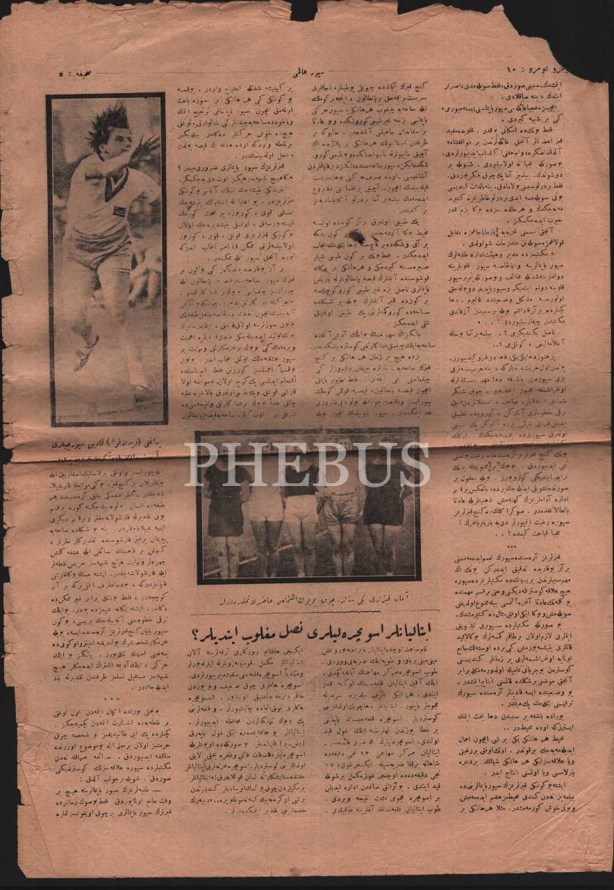 Spor tarihi: SPOR ALİMİ gazetesinin 24 Şubat 1927 tarihli sayısı, 29x42 cm, arka sayfasında yırtık mevcut haliyle