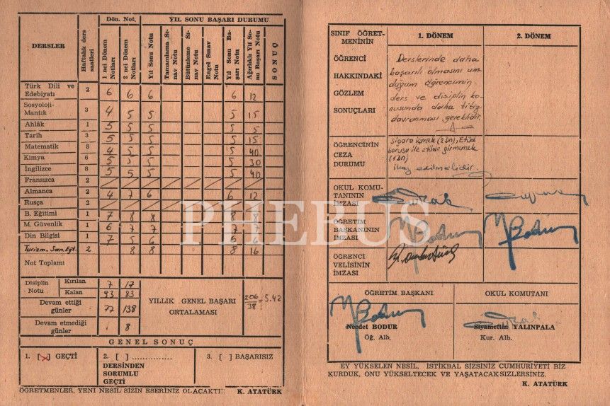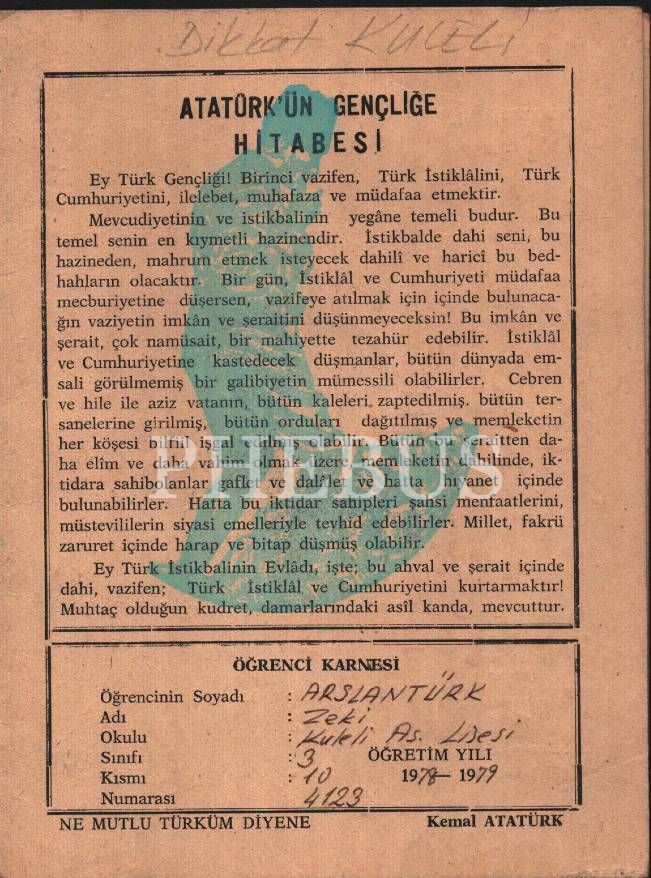 Eğitim tarihi: Kuleli Askeri Lisesi 1978-79 eğitim yılı karnesi, 19x29 cm