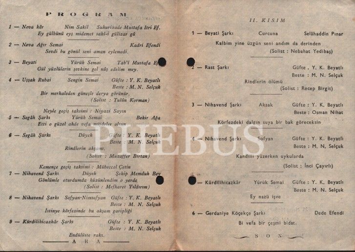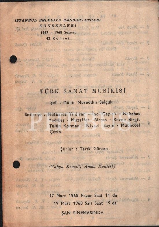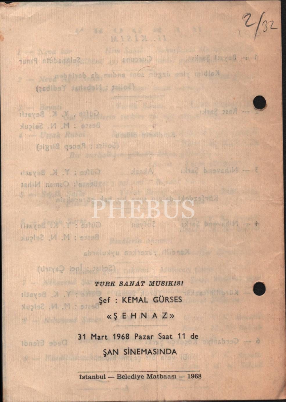Sanat tarihi: Münir Nureddin Selçuk şefliğinde TÜRK SANAT MUSİKİSİ konser programı, İstanbul 1968, 17x25 cm