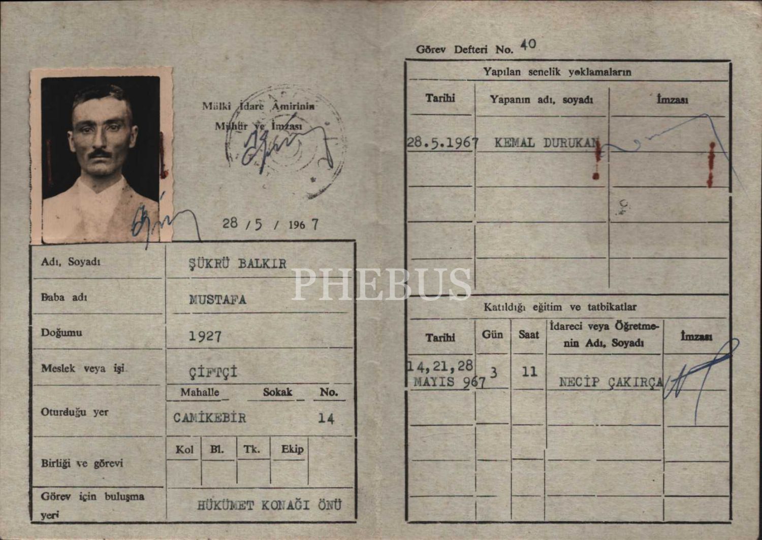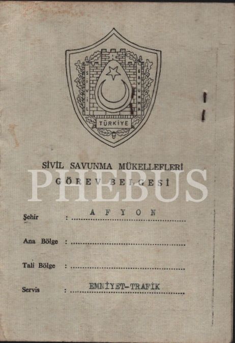 Sivil Savunma Mükellefleri fotoğraflı görev belgesi, Afyon 1967, 15x21 cm