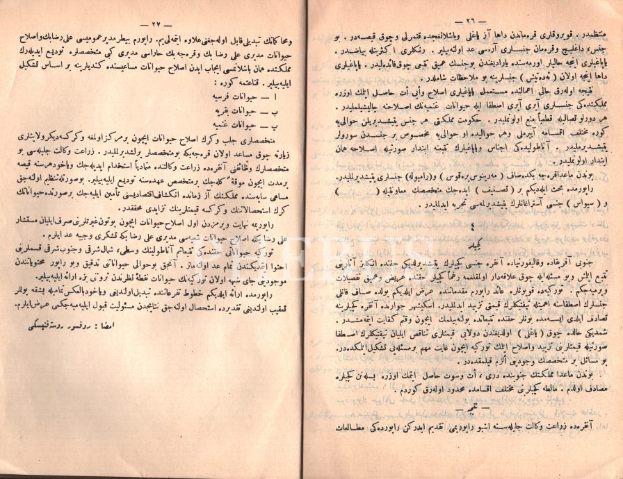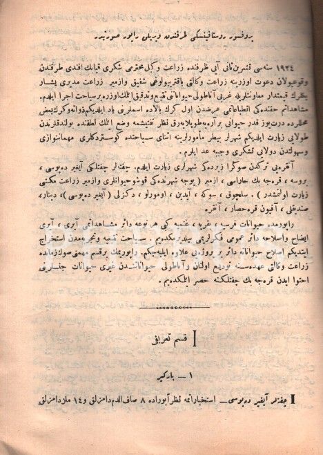 "1924 senesi Teşrinisani ayı zarfında Ziraat Vekil-i Muhteremi Şükrü Kayabek Efendi tarafından vuku bulan davet üzerine Ziraat Vekaleti Bakteriyologu Şefik ve İzmir Ziraat Müdürü Yaşar Beylerin kıymetdar muavenetleriyle Garbi Anadolu hayvanatını tetebbu ve tedkik eylemek üzere bir seyahat icra eyledim..."