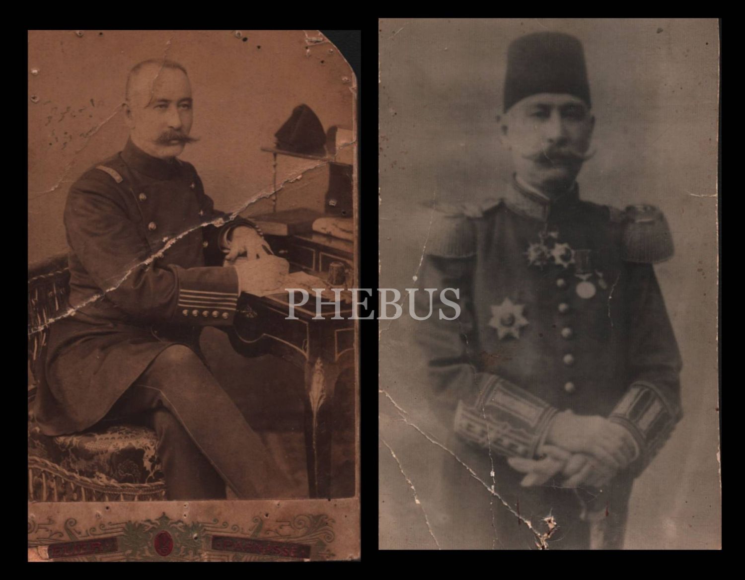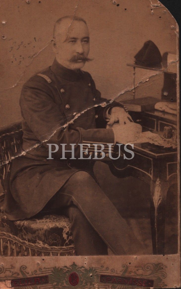 Kuleli Askeri Lisesi Ders Nazırı Hasan Fuat Paşa´ya ait 2 adet hatıra fotoğrafı, Parnasse Fotoğrafhanesi-Constantinople, biri ortadan kırık haliyle