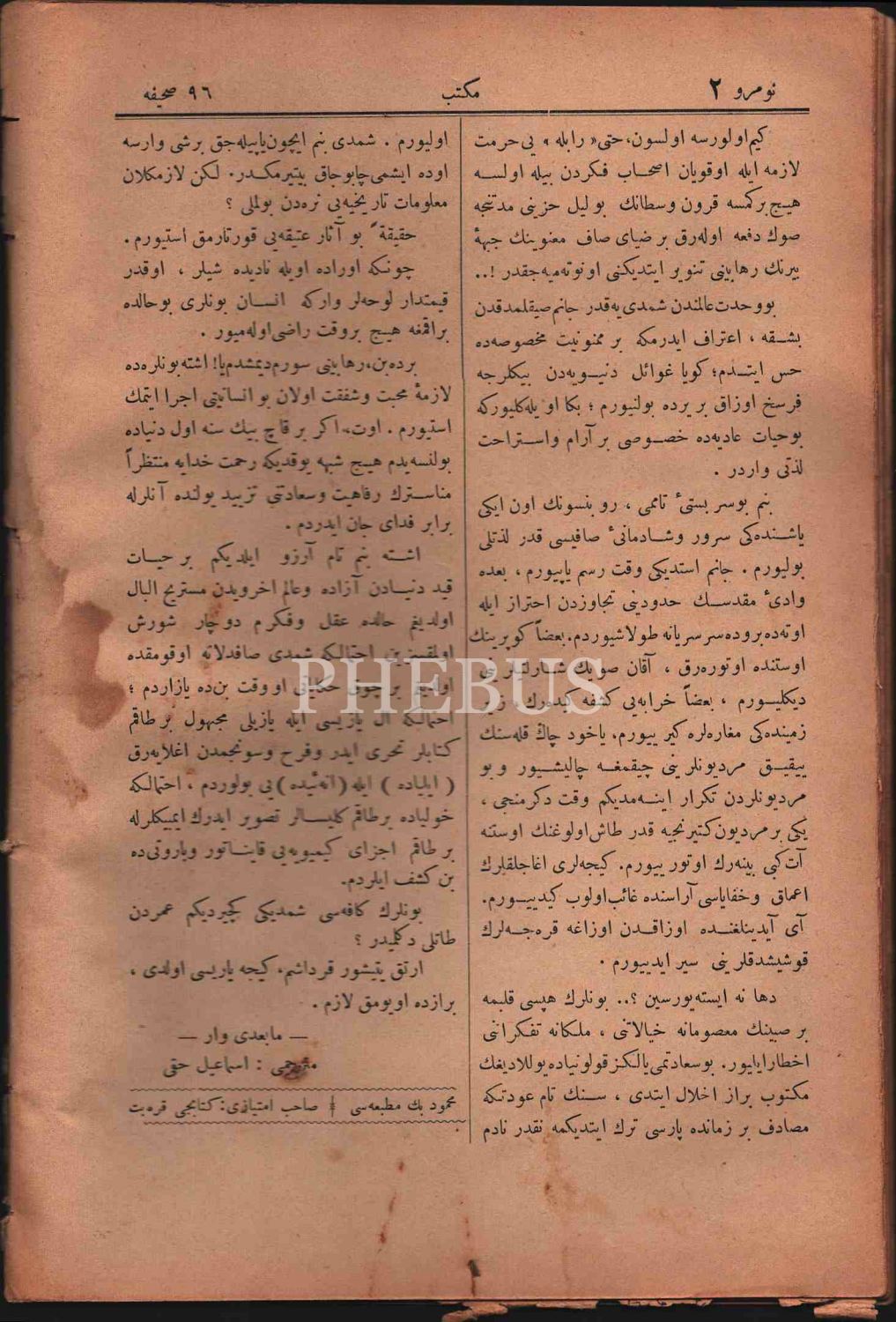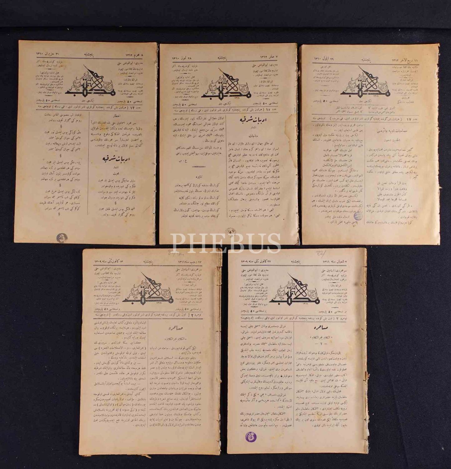 MEKTEB dergisinin 1311 yılında yayımlanmış 5 sayısı, 18x27 cm, ciltten çıkma