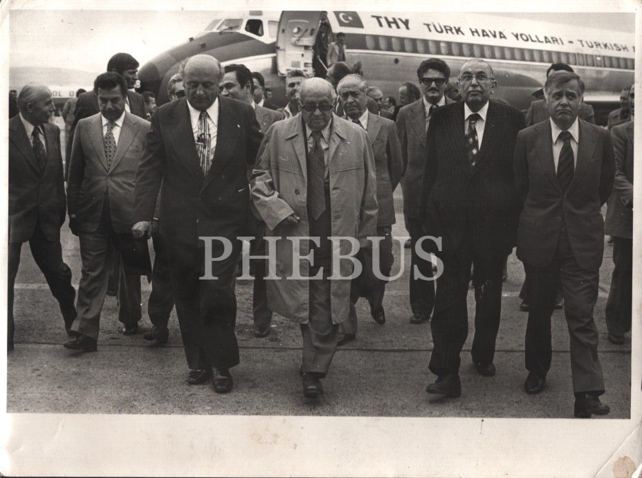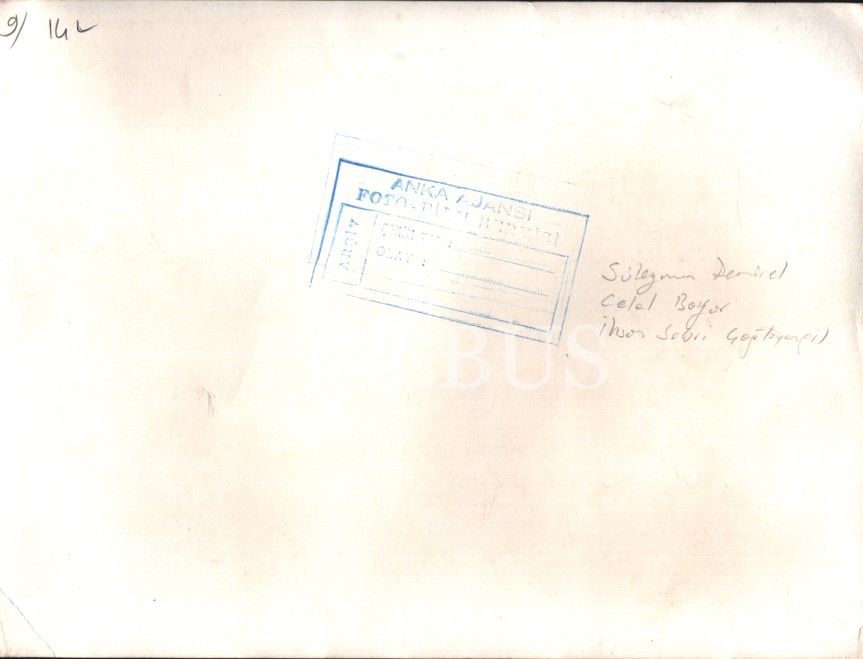 Siyaset tarihi: THY uçağından inen Celal Bayar, Süleyman Demirel vd., Anka Ajansı damgalı, 18x24 cm