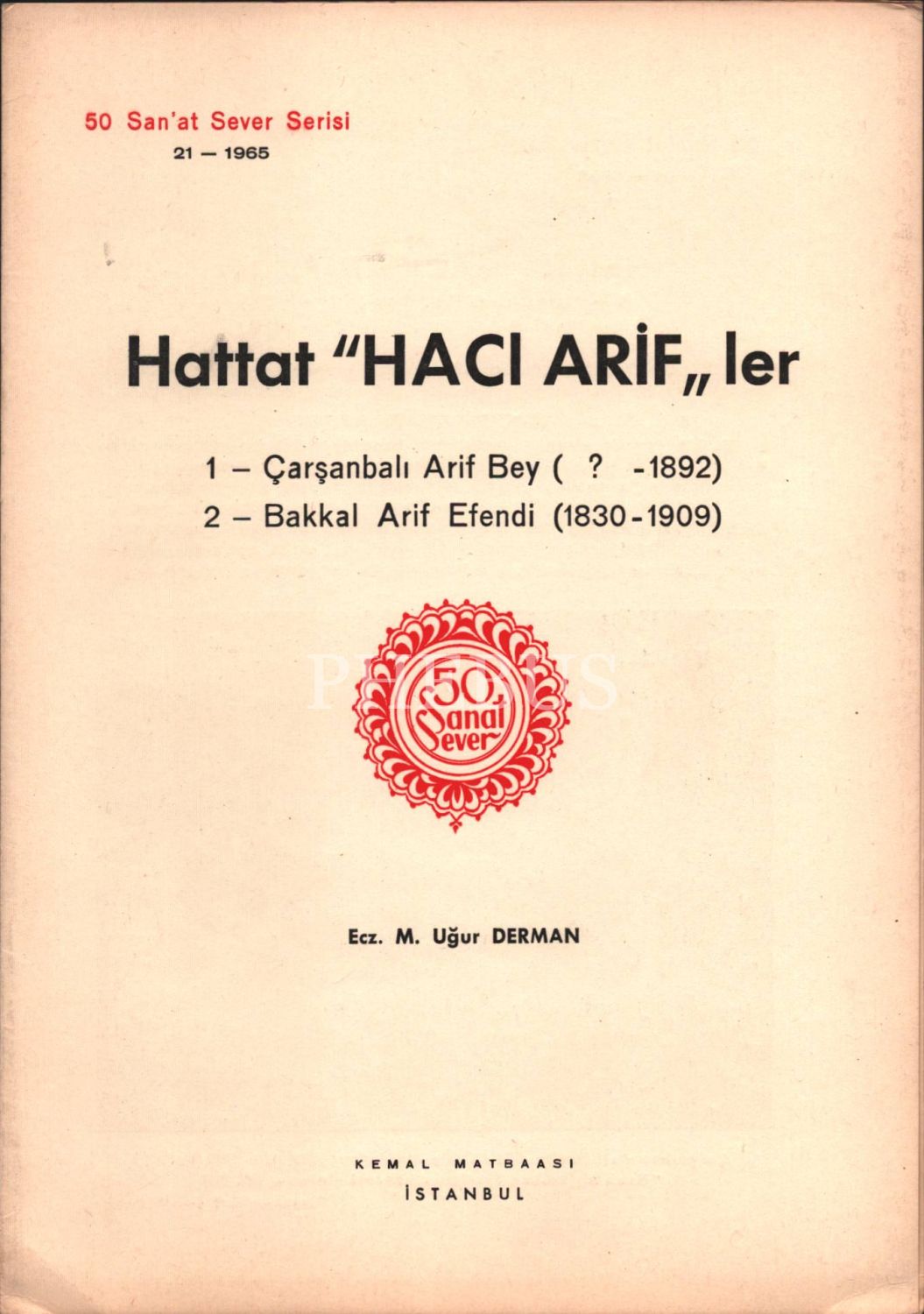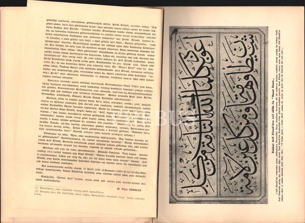 HATTAT "HACI ARİF"LER (Çarşanbalı Arif Bey-Bakkal Arif Efendi), Ecz. M. Uğur Derman, Kemal Matbaası, İstanbul, 6 sayfa, 18x25 cm