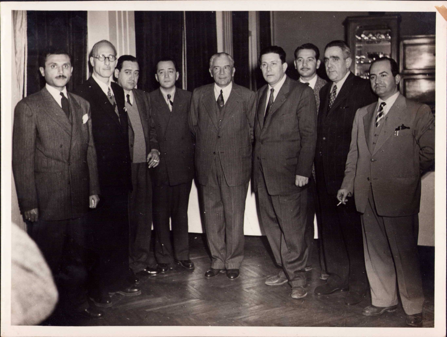 1882 - 1968 arasında yaşamış 1948 yılında T.B.M.M. başkanlığı yapmış Ali Fuat Cebesoy (ortadaki) ve Meclis çalışanları, 22x17cm