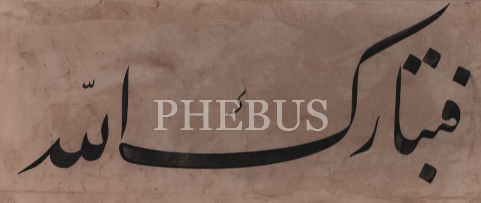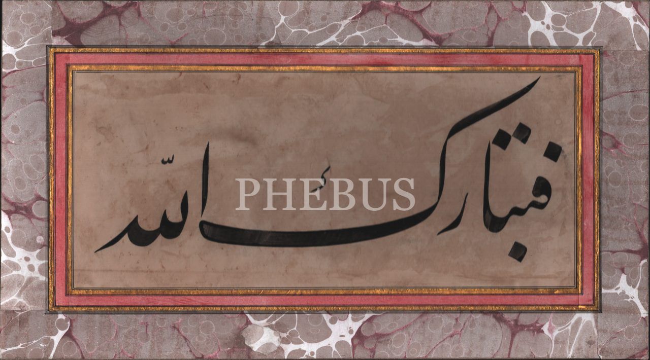 Celî ta´lik yazı ile "Fetebârekallah", ebru pervazlı 22x40 cm