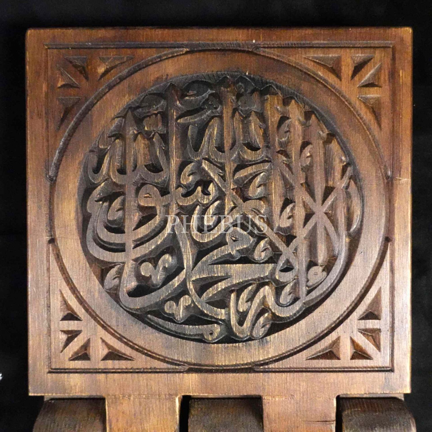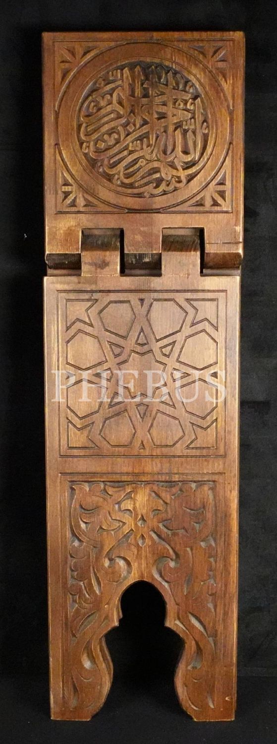 El yapımı ahşap oyma Kur´an rahlesi, besmele ve kelime-i Tevhid yazılı, 21x74 cm