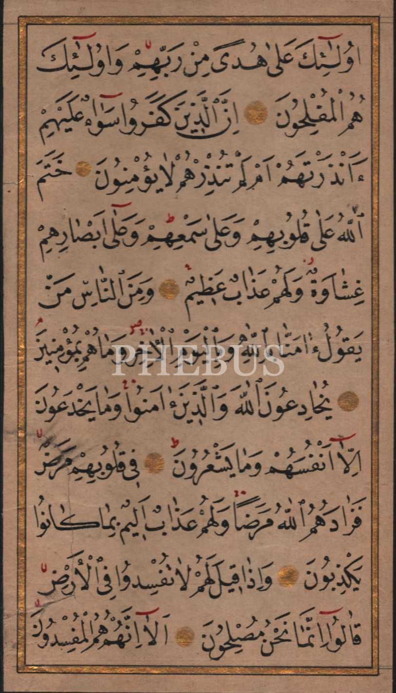 Nesih yazı ile Bakara Suresi´nin bir sahifesi, yazı: 10x18 cm