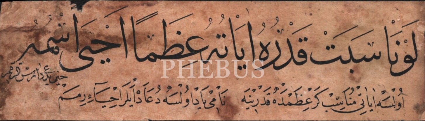 Hoca işi sülüs-nesih satır: Kaside-i Bürde beyti, 5x19 cm