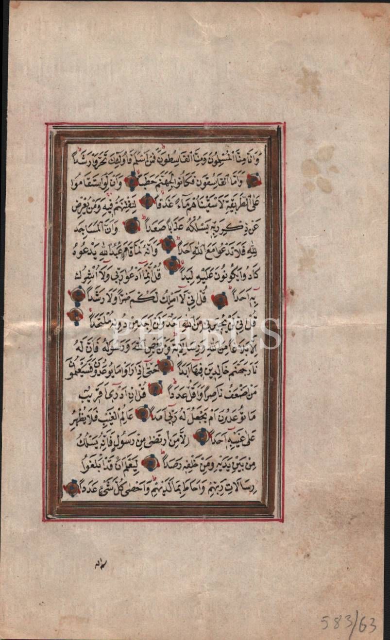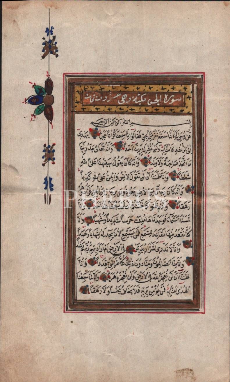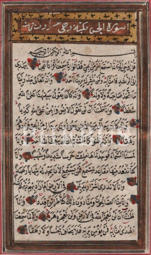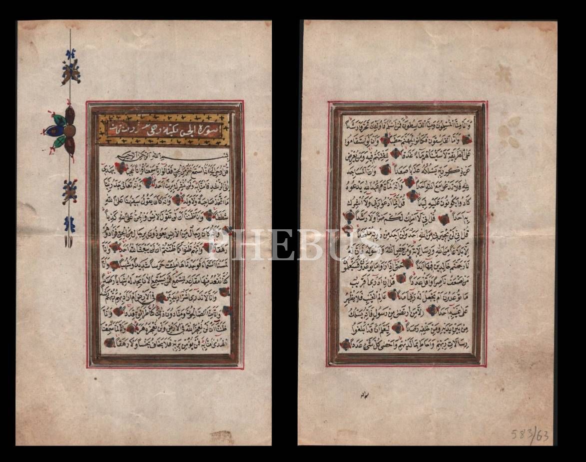 Nesih yazı ile Cin Suresinden önlü-arkalı iki sayfa, 9x15 cm