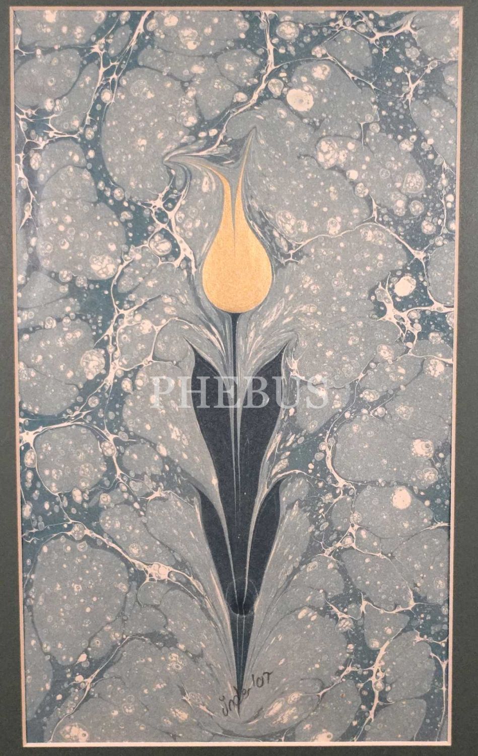Önder imzalı çiçekli ebru, 35x48 cm
