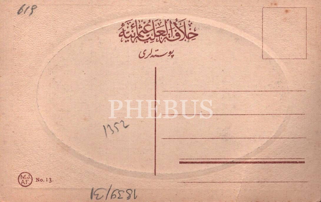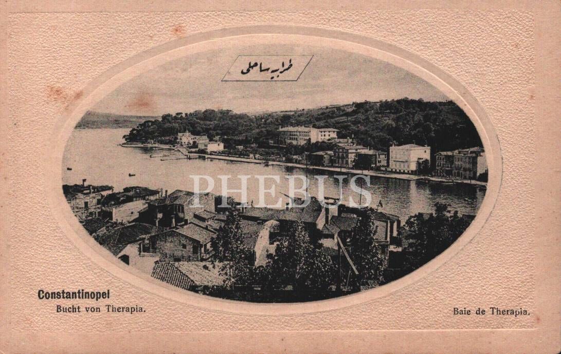 Gofre kartpostal: Tarabya Koyu, Constantinople, ed. M.J. AF. [Hilafet-i Aliyye-i Osmaniye Postaları], ön yüzü lekeli haliyle