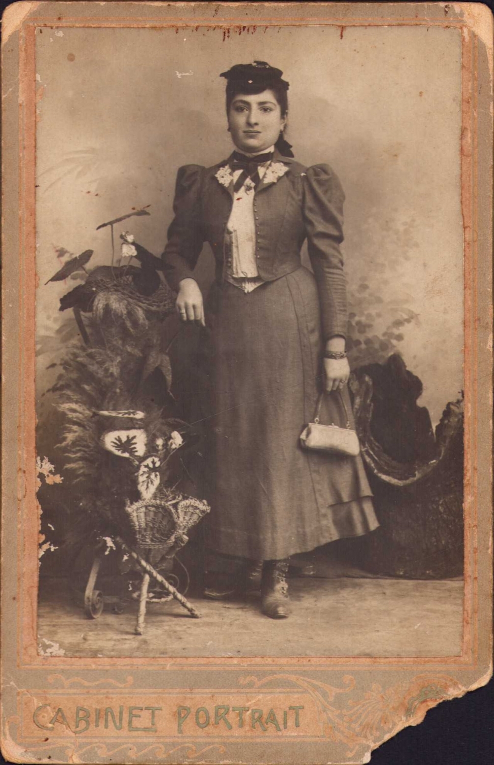 Osmanlı Levanten kadın kabin fotoğrafı, bir kenarı kopuk, 10x16 cm
