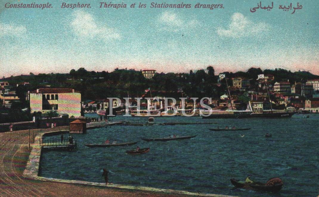 Tarabya kıyısında kayıklar ve gemiler, Constantinople, ed. M.J.C.