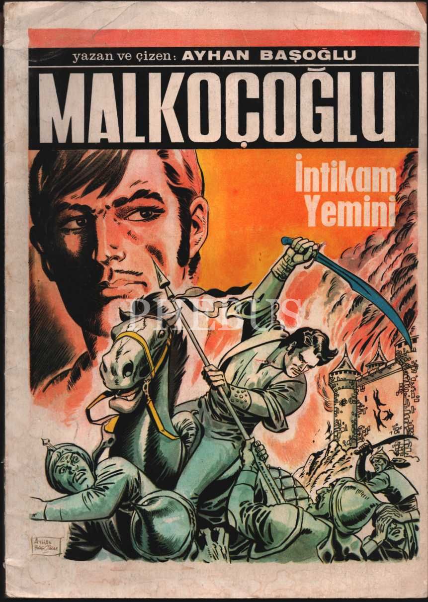 MALKOÇOĞLU - İNTİKAM YEMİNİ, yazan ve çizen Ayhan Başoğlu´ndan ithaflı ve imzalı, Bilmen Basımevi, İstanbul - 1971, 23x32 cm