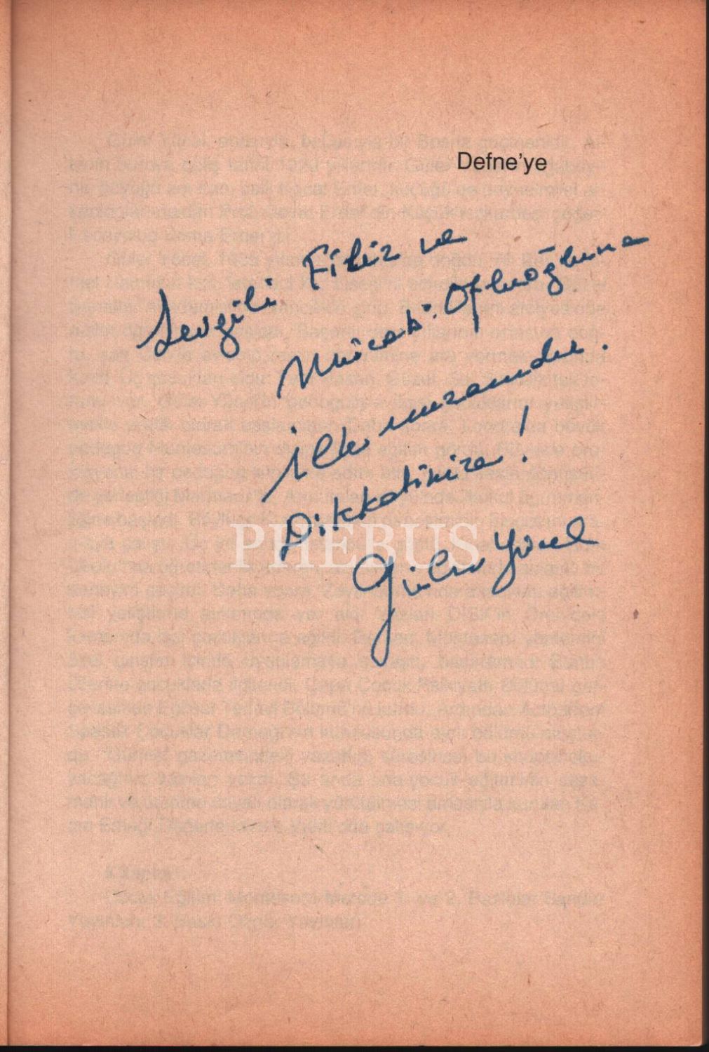İthaf, "Sevgili Filiz ve Mücahit Ofluoğlu´na, İlk imzamdır. Dikkatinize! Güler Yücel" şeklindedir.