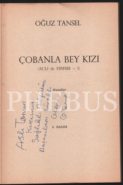 ÇOBANLA BEY KIZI, Oğuz Tansel´den ithaflı ve imzalı, Yaz Yayınları, İstanbul - Şubat 1985, 122 sayfa, 14x20 cm