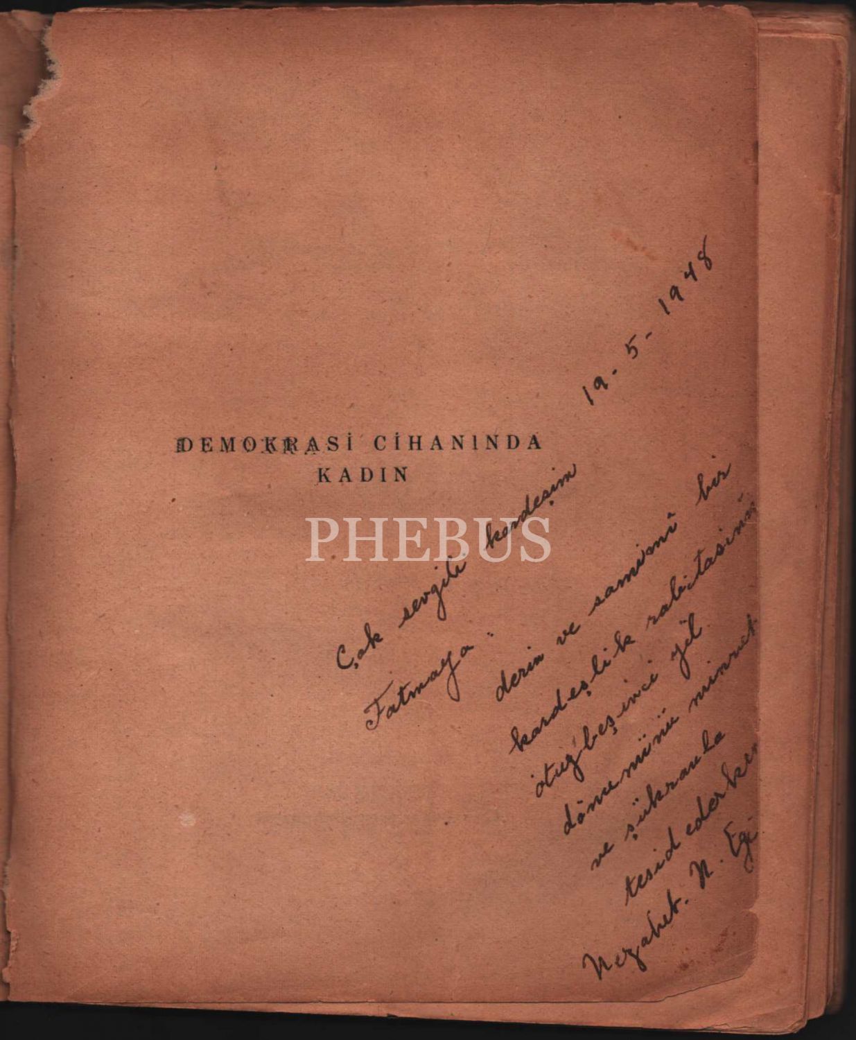 Çeviren Nezahat Nurettin Ege´den ithaflı ve imzalı DEMOKRASİ CİHANINDA KADIN, Dünya Kâğıtçılık ve Kitapçılık Evi, İstanbul - 1946, 126 sayfa, 17x22 cm