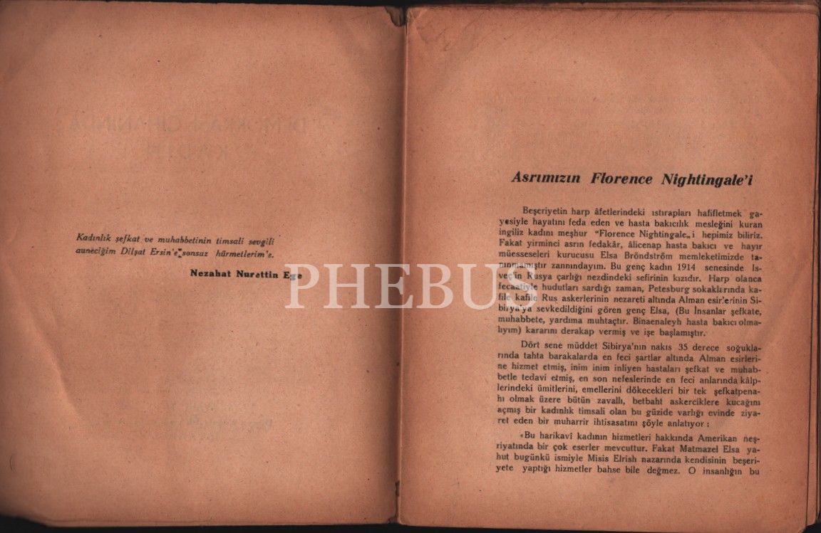 İthaf, "19-5-1948 Çok sevgili kardeşim Fatmaya: Derin ve samimî bir kardeşlik rabıtasının otuz beşinci yıl dönümünü minnet ve şükranla tesid ederken. Nezahat N. Ege" şeklindedir.