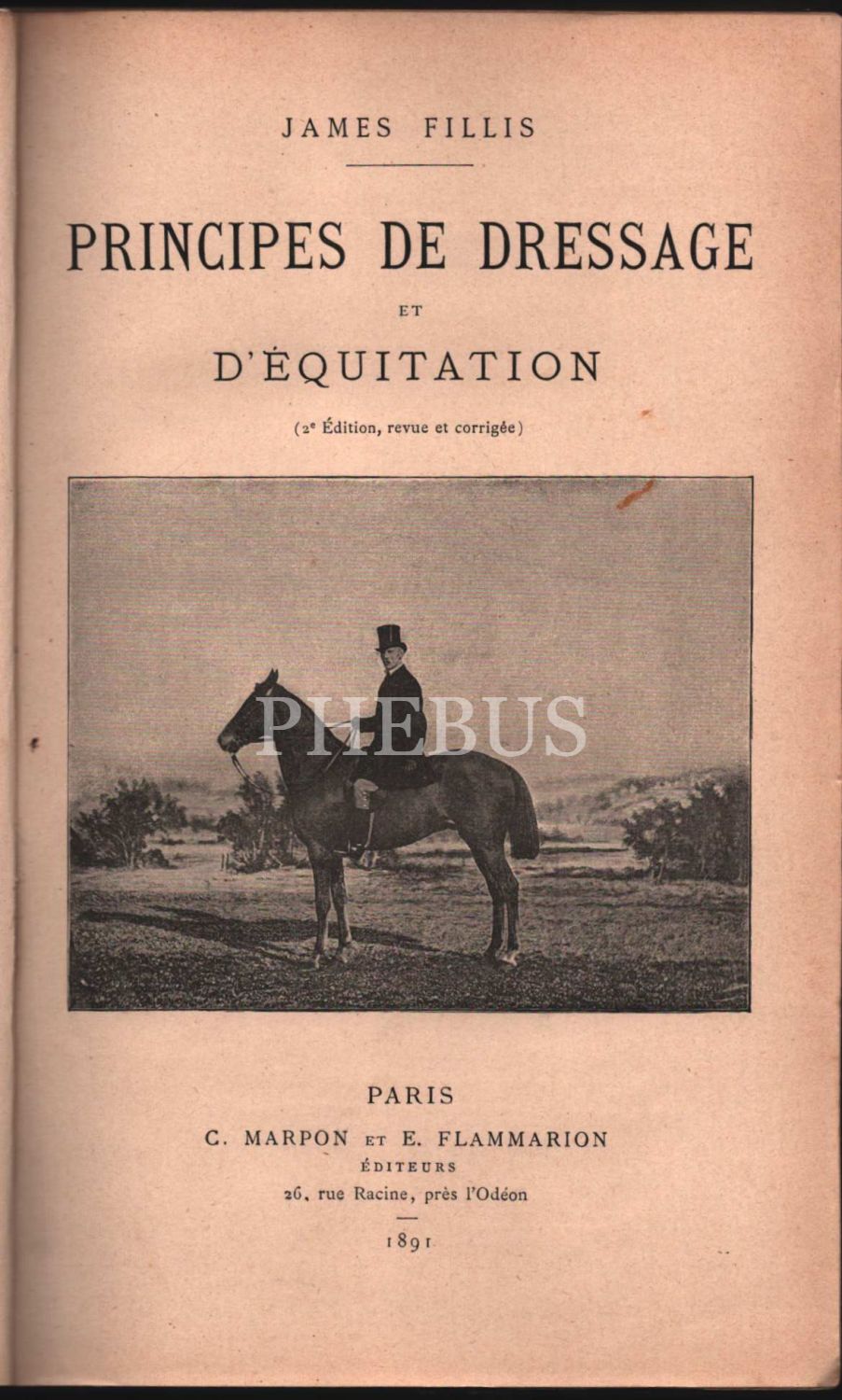 PRINCIPES DE DRESSAGE ET D´EQUITATION, James Fillis, Paris - 1891, 374 sayfa, 17x26 cm