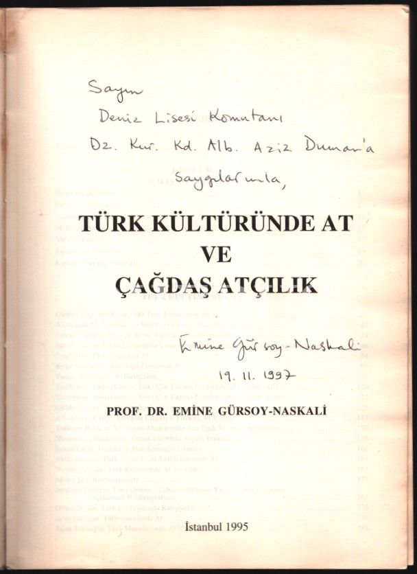 TÜRK KÜLTÜRÜNDE AT VE ÇAĞDAŞ ATÇILIK, Prof. Dr. Emine Gürsoy-Naskali´den ithaflı ve imzalı, Türkiye Jokey Kulübü, İstanbul - 1995, 379 sayfa, 20x28 cm