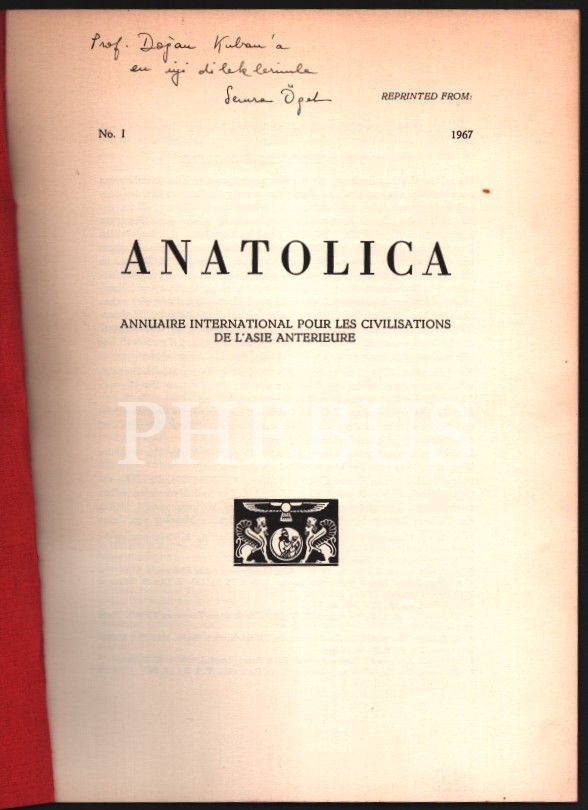 Semra Özal´dan Doğan Kuban´a ithaflı ve imzalı ANATOLICA - Annuaire International Pour Les Civilisations De L´Asie Anteribure, No.1 - 1967, 14 sayfa, 20x27 cm