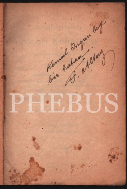 İthaf, "Kemal Argan beye bir hatıra. F. Altay" şeklindedir.