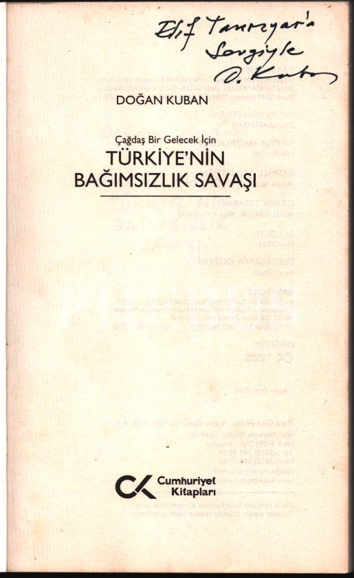 Çağdaş Bir Gelecek İçin TÜRKİYE´NİN BAĞIMSIZLIK SAVAŞI, Doğan Kuban´dan ithaflı ve imzalı, Cumhuriyet Kitapları, Ekim 2010, 334 sayfa, 14x21 cm