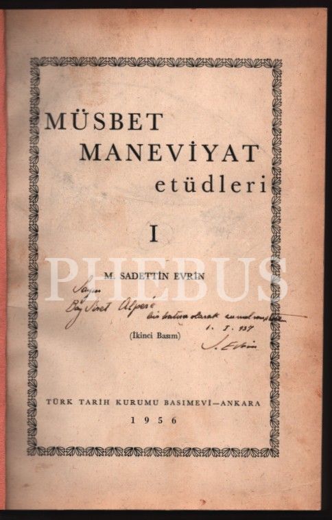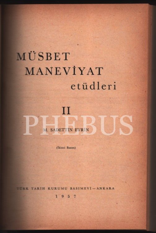 MÜSBET MANEVİYAT ETÜDLERİ (I-II), M. Sadettin Evrin´den ithaflı ve imzalı, Türk Tarih Kurumu Basımevi, Ankara - 1956, 362 sayfa, 17x24 cm
