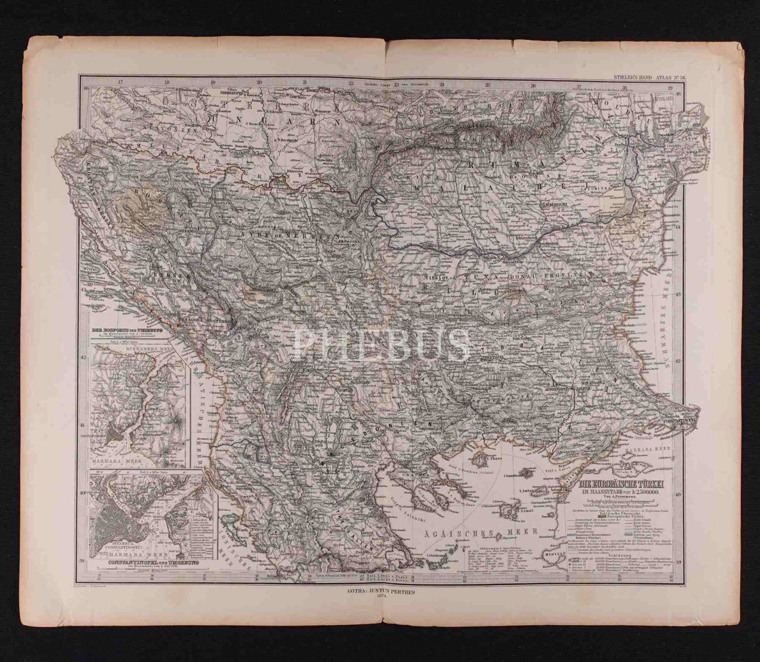Balkanlar haritası, yay. Justus Perthes, Gotha/Almanya 1874, 38x47 cm