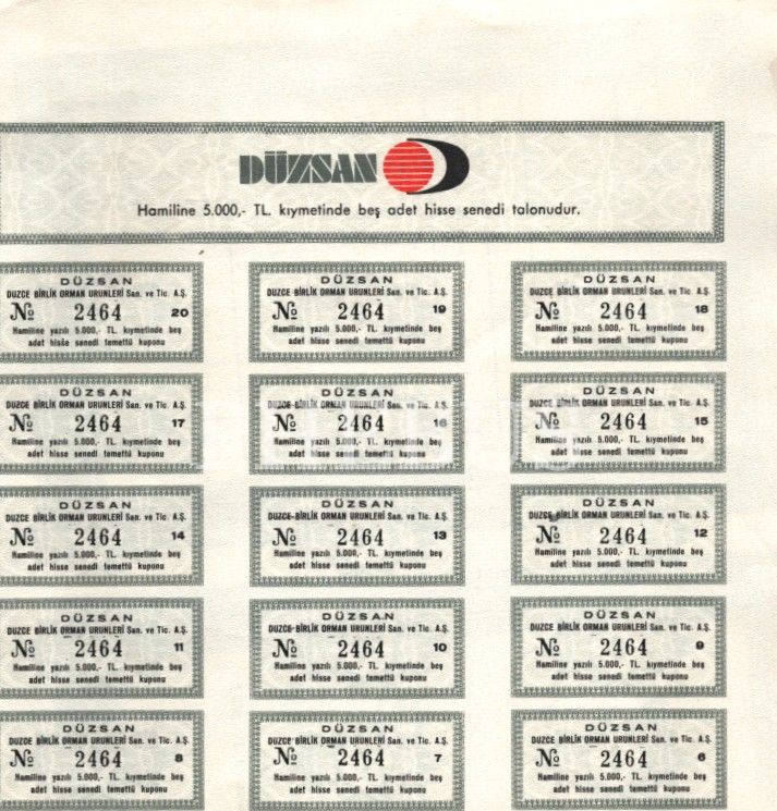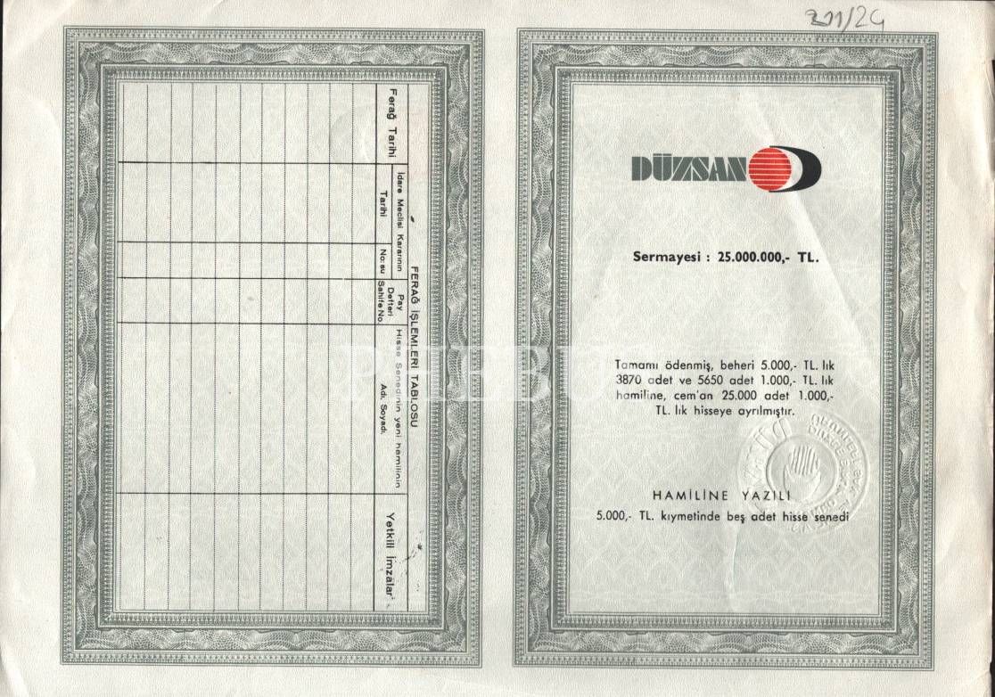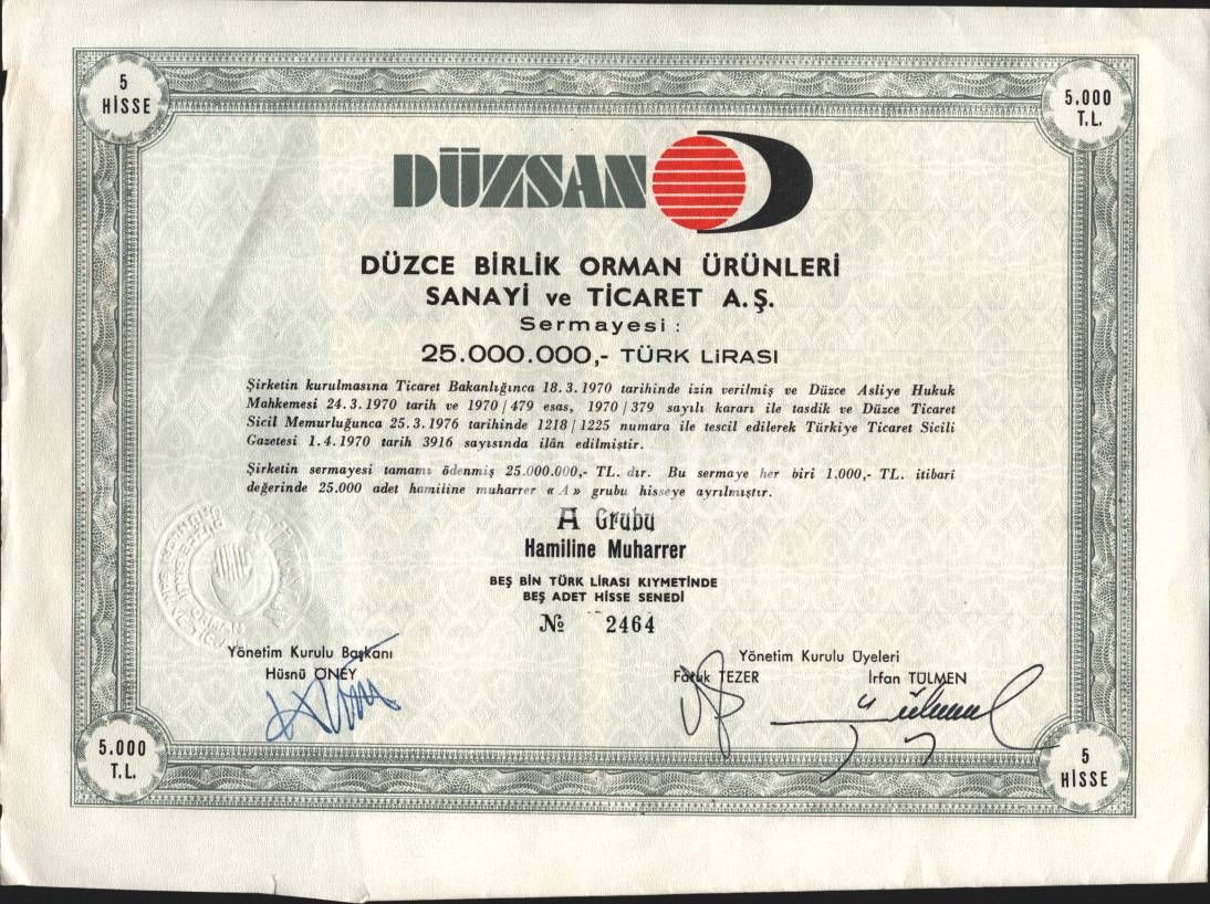 Düzce Birlik Orman Ürünleri Sanayi ve Ticaret A.Ş.´ye ait hisse senedi, 29x42 cm
