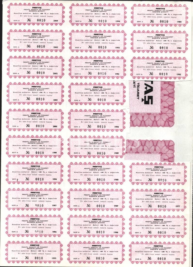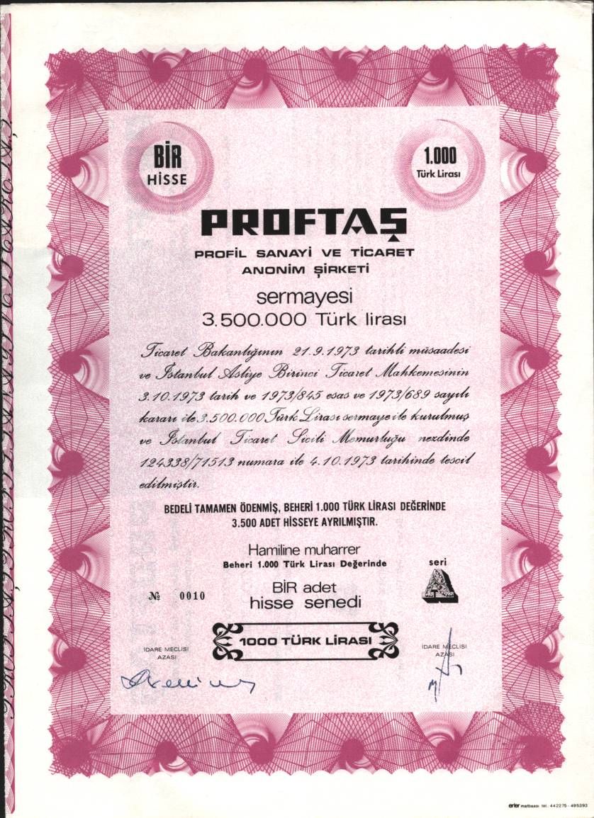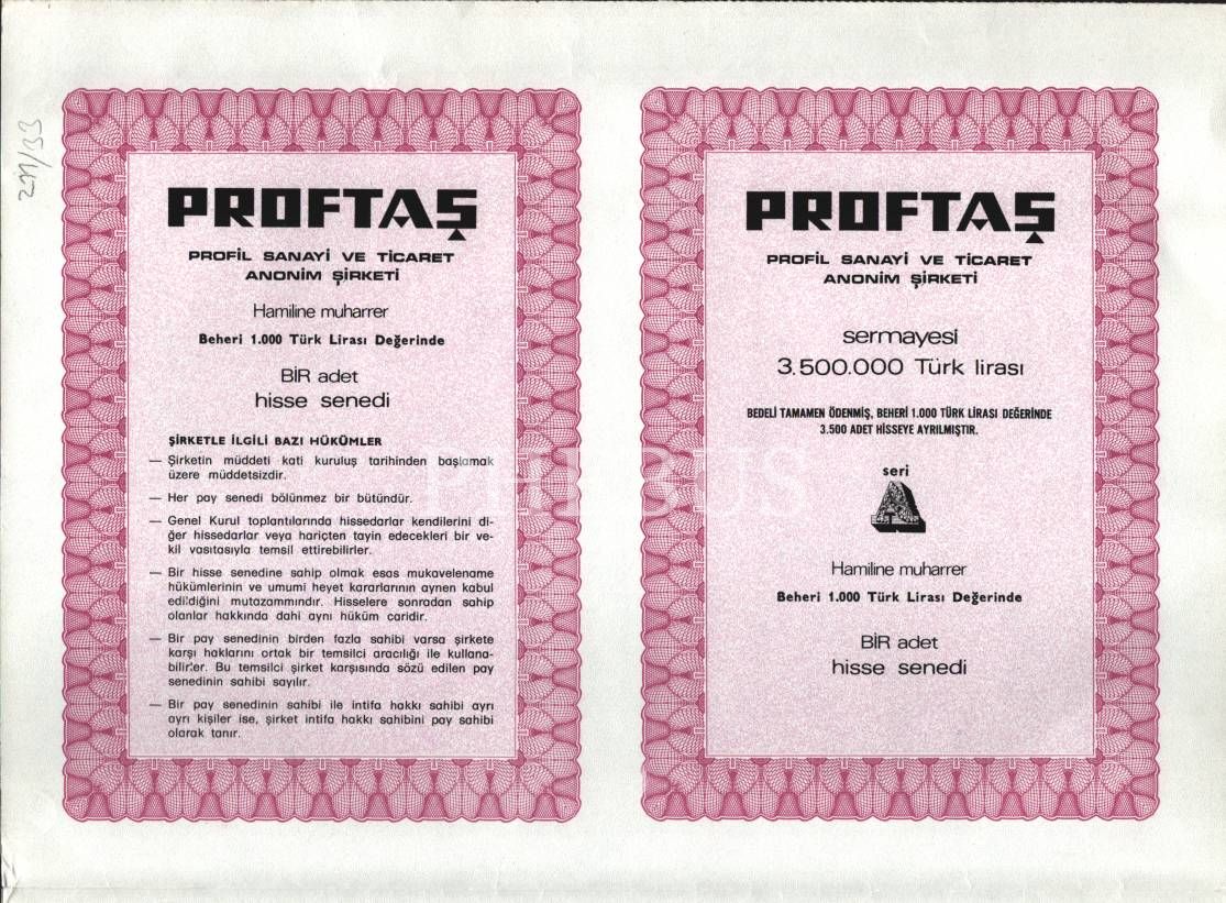 Proftaş Profil Sanayi ve Ticaret A.Ş.´ye ait hisse senedi, 32x46 cm