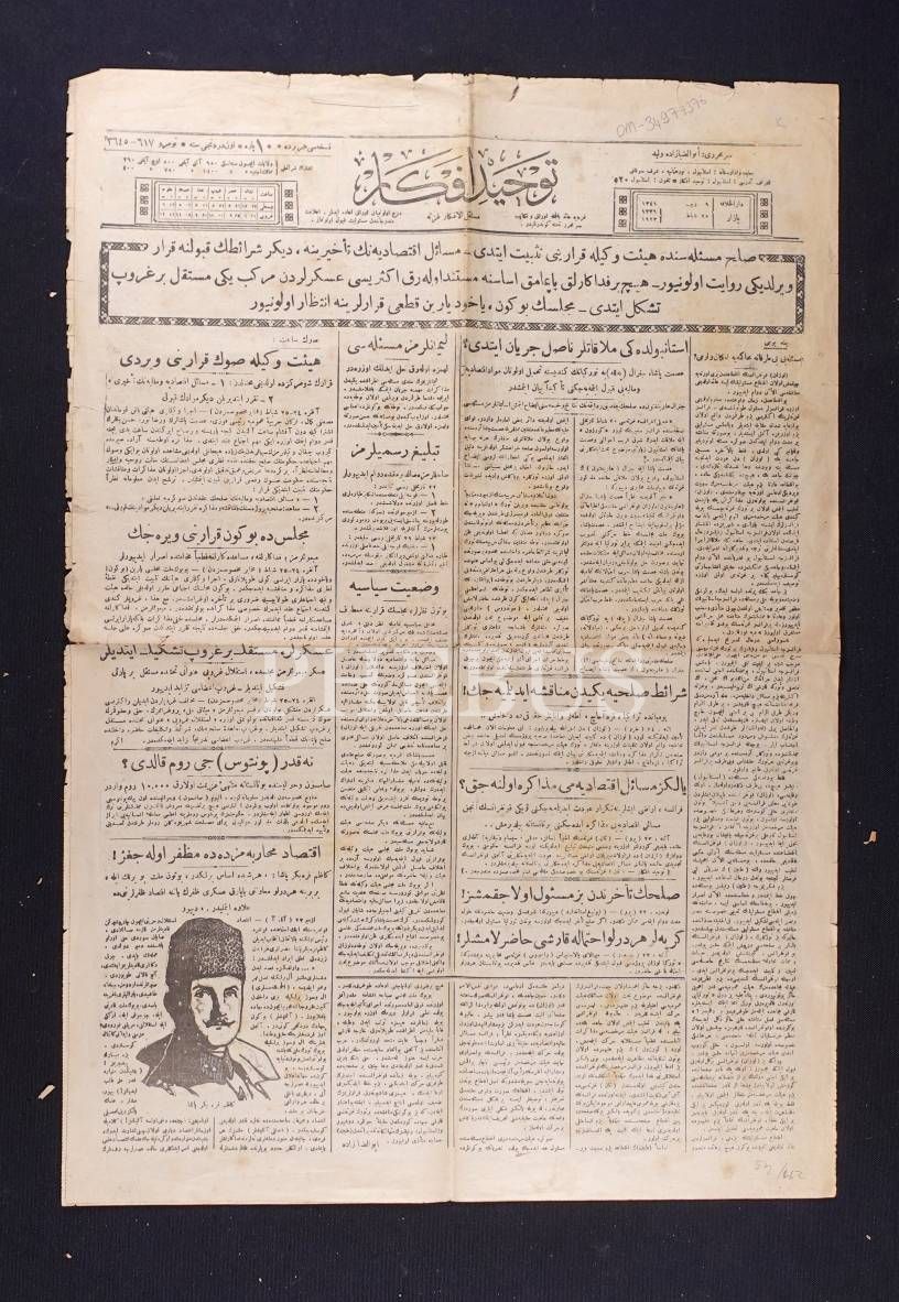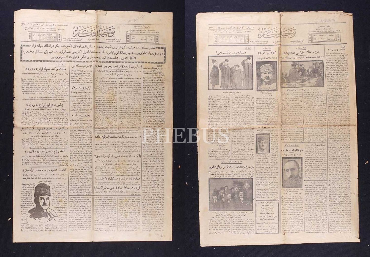 TEVHİD-İ EFKÂR gazetesinin 1923-24 yıllarında yayımlanan 2 sayısı, 43x64 cm