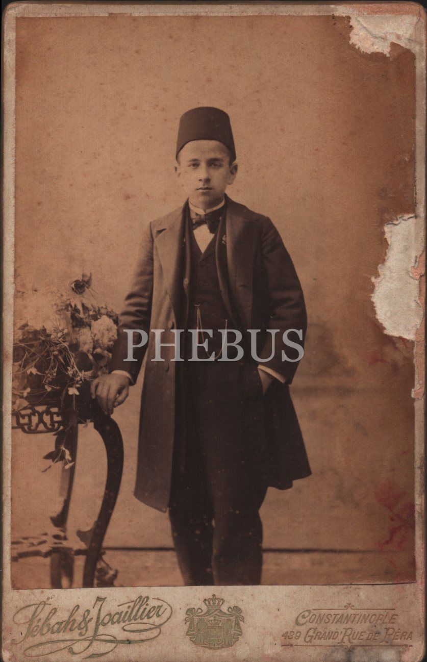 Fesli genç erkek fotoğrafı, Sebah&Joaillier Fotoğrafhanesi-Constantinople, 10x16 cm