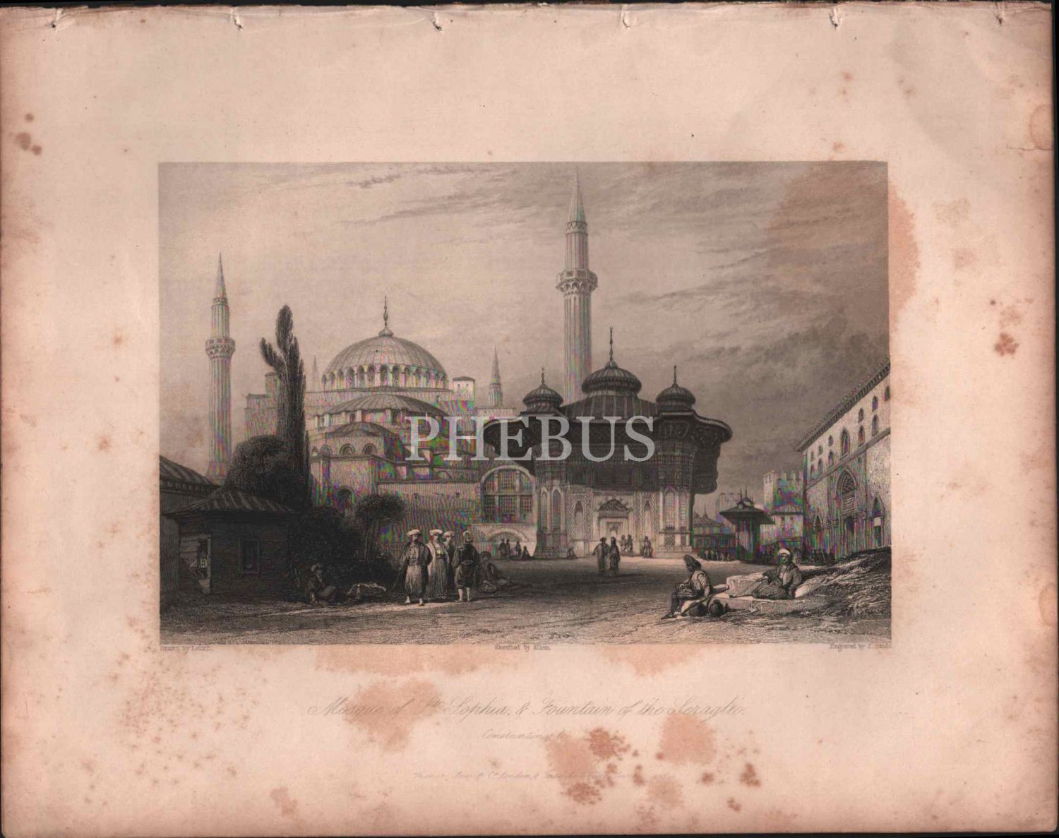 Ayasofya Camii ve Sultan III. Ahmed Çeşmesi gravürü, ed. Leitch-Allom-J. Sands, 21x27 cm