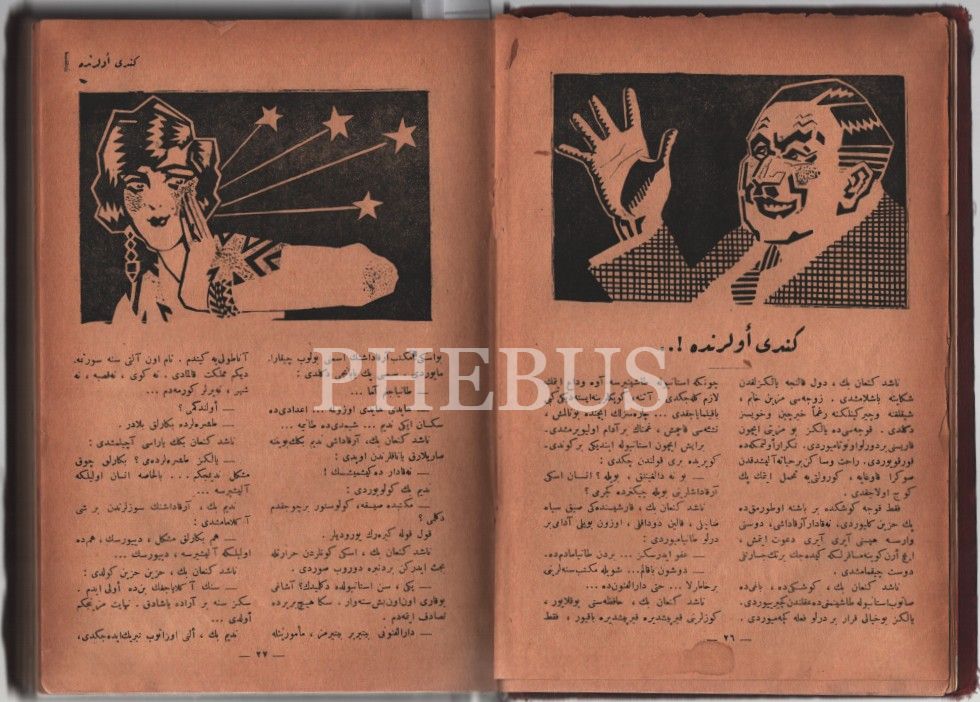 RESİMLİ HİKÂYE dergisinin 1927 tarihli 2. sayısı ile EDEBİYAT-I UMUMİYYE MECMUASI´nın 1917 tarihli 21 sayısı tek ciltte, 16x23 cm
