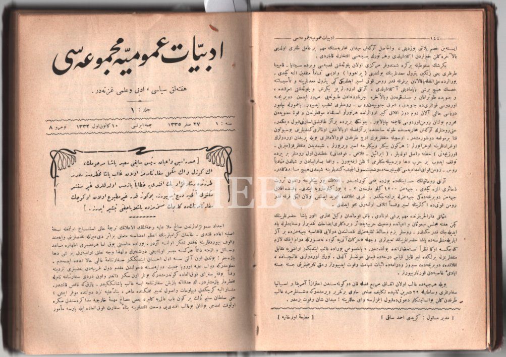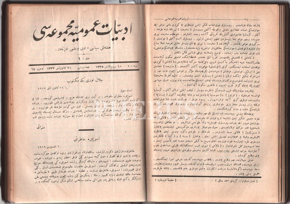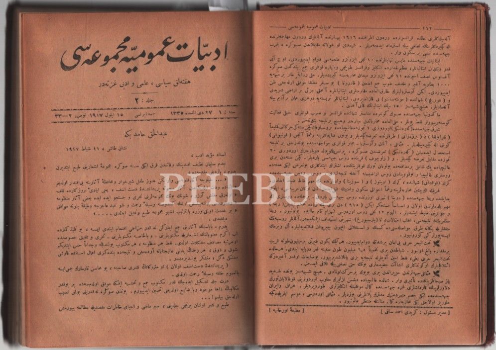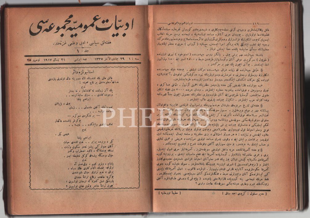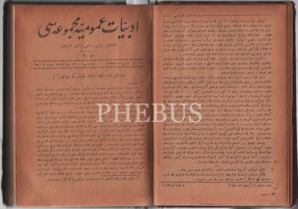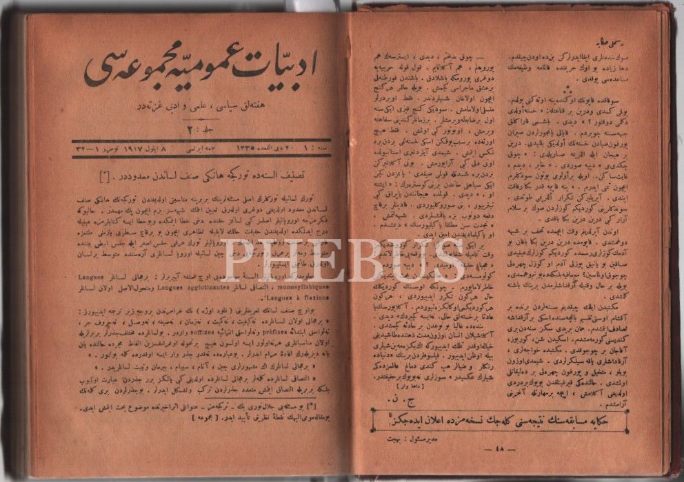 Edebiyat-ı Umumiyye Mecmuası´nın mevcut sayıları: 1/32, 2/33, 3/34, 6-14, 22-30.