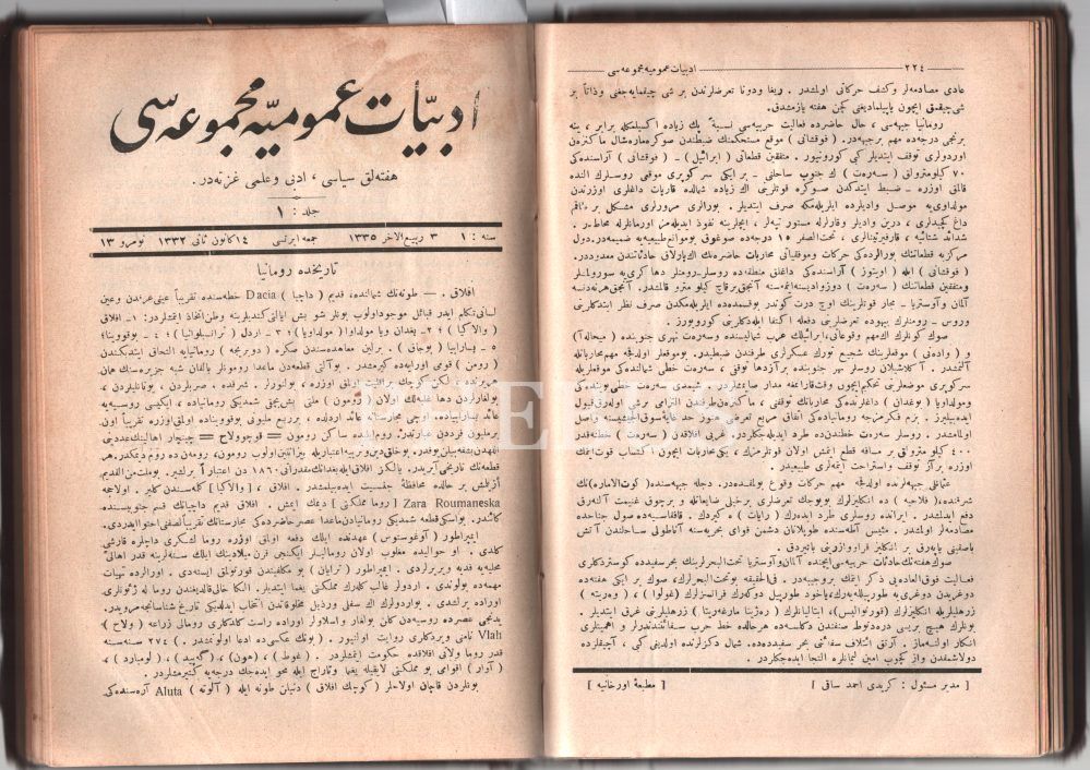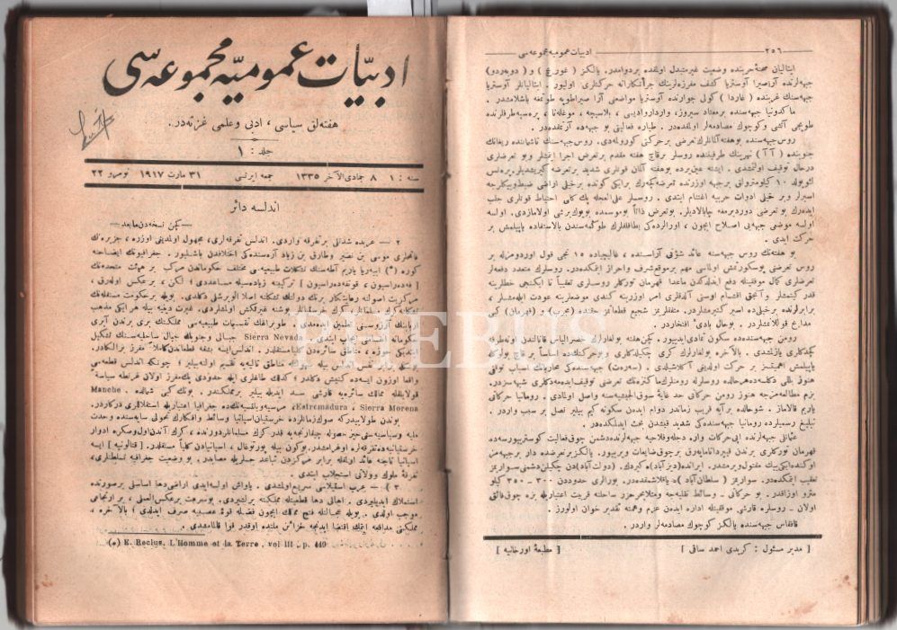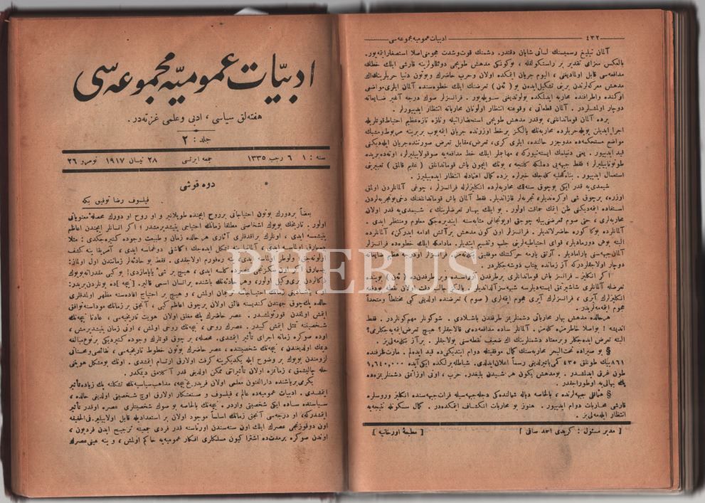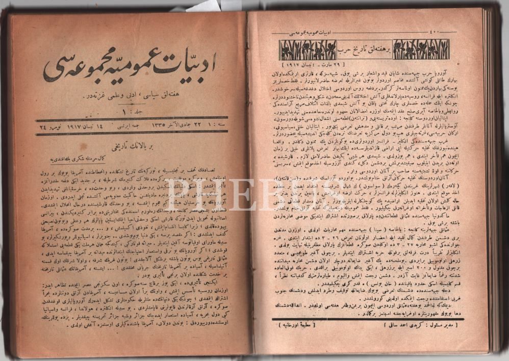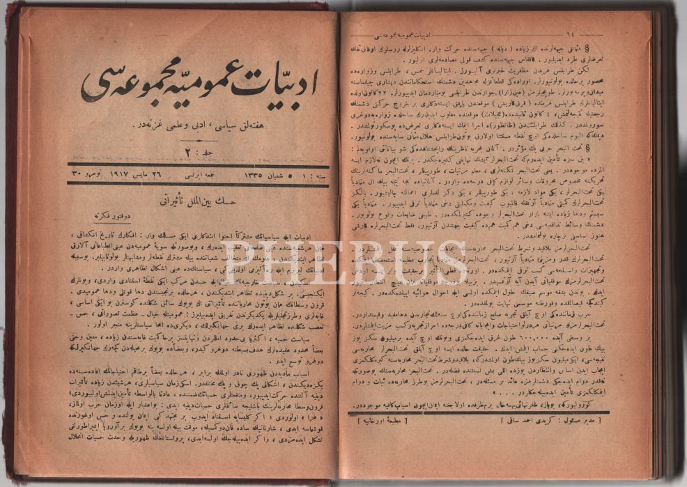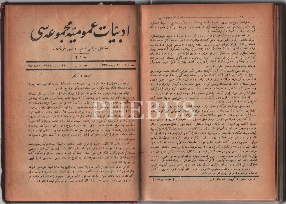 Edebiyat-ı Umumiyye Mecmuası´nın mevcut sayıları: 1/32, 2/33, 3/34, 6-14, 22-30.