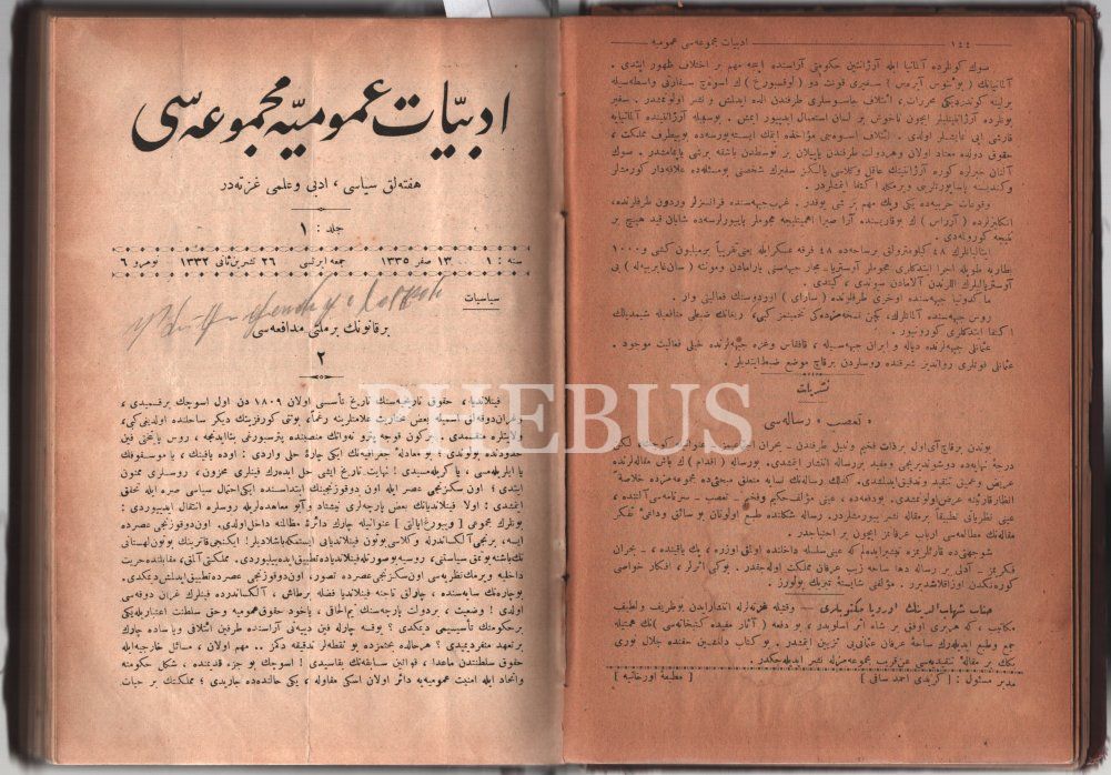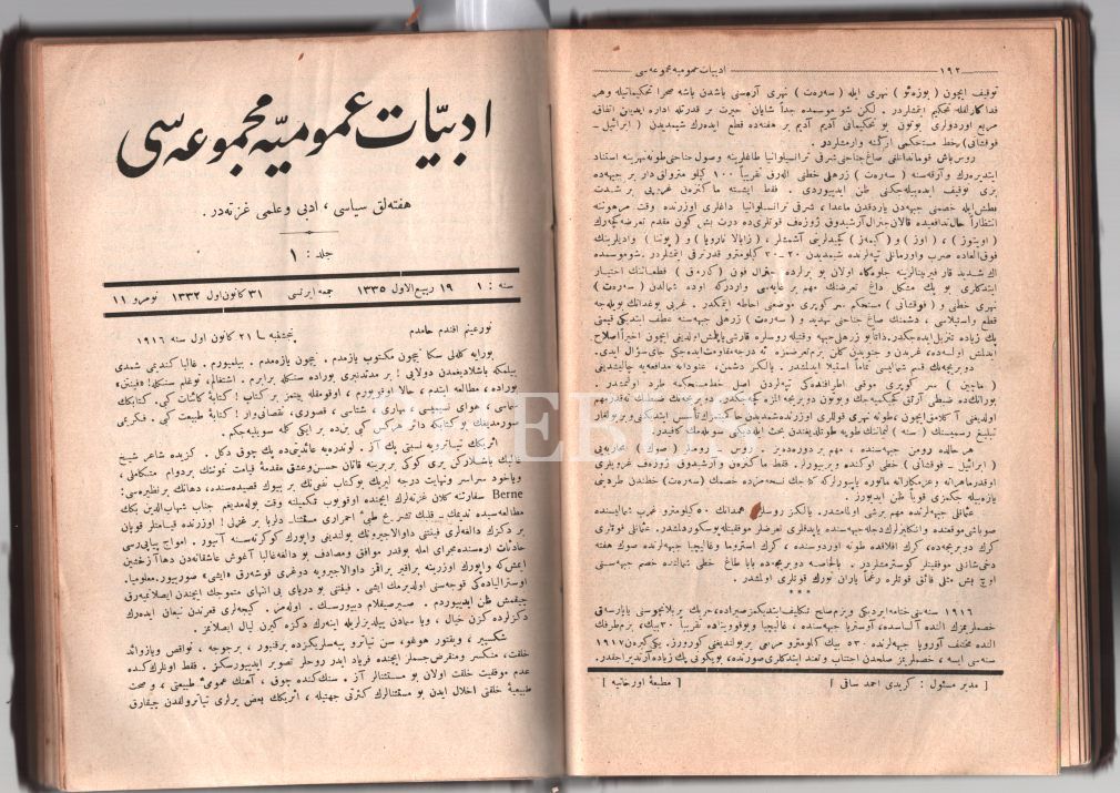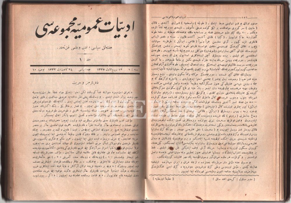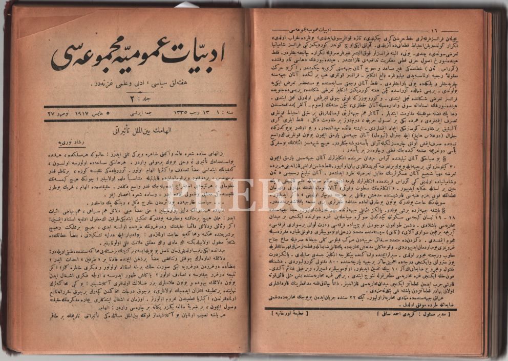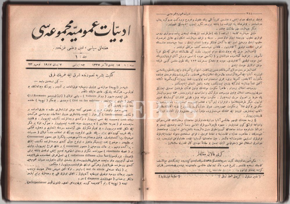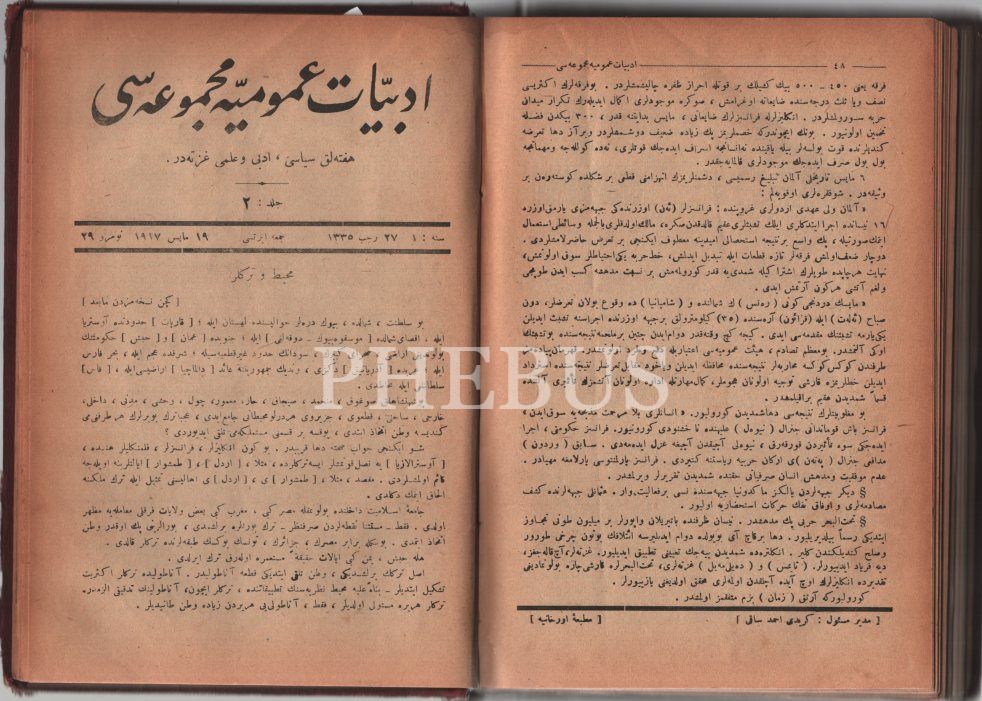 Edebiyat-ı Umumiyye Mecmuası´nın mevcut sayıları: 1/32, 2/33, 3/34, 6-14, 22-30.