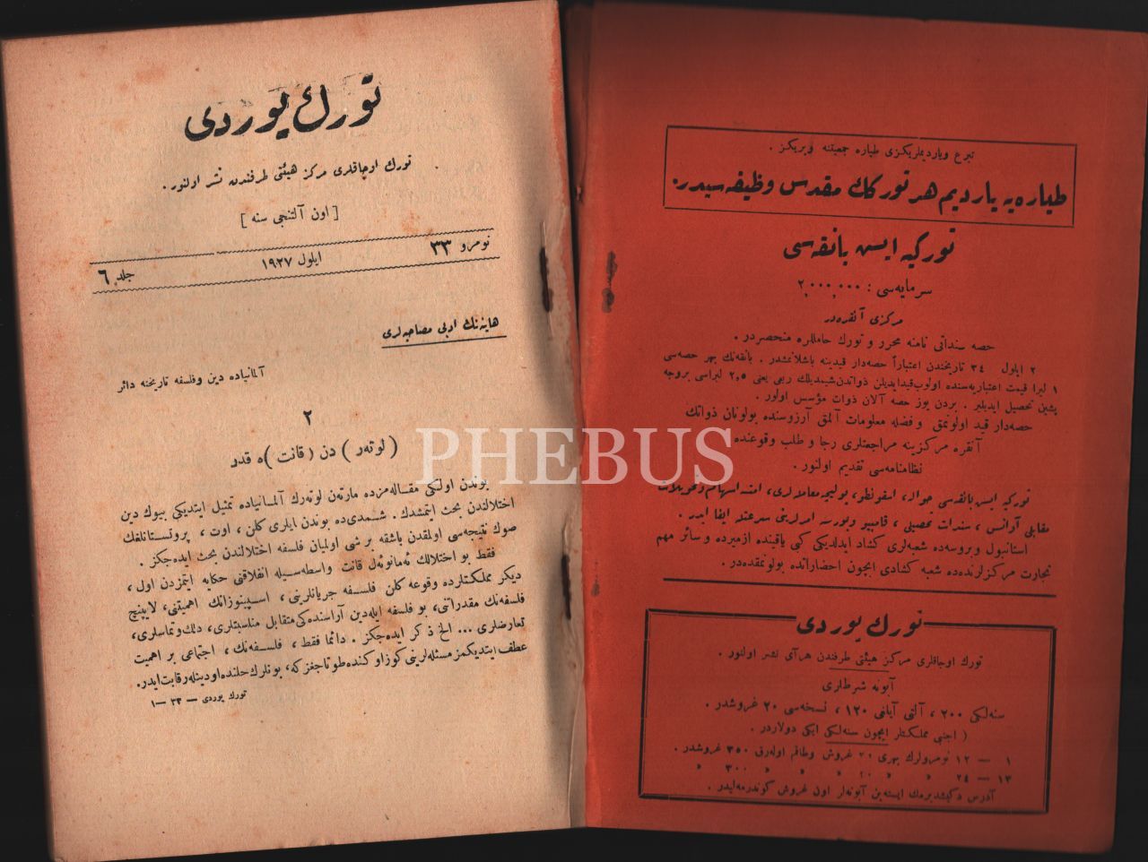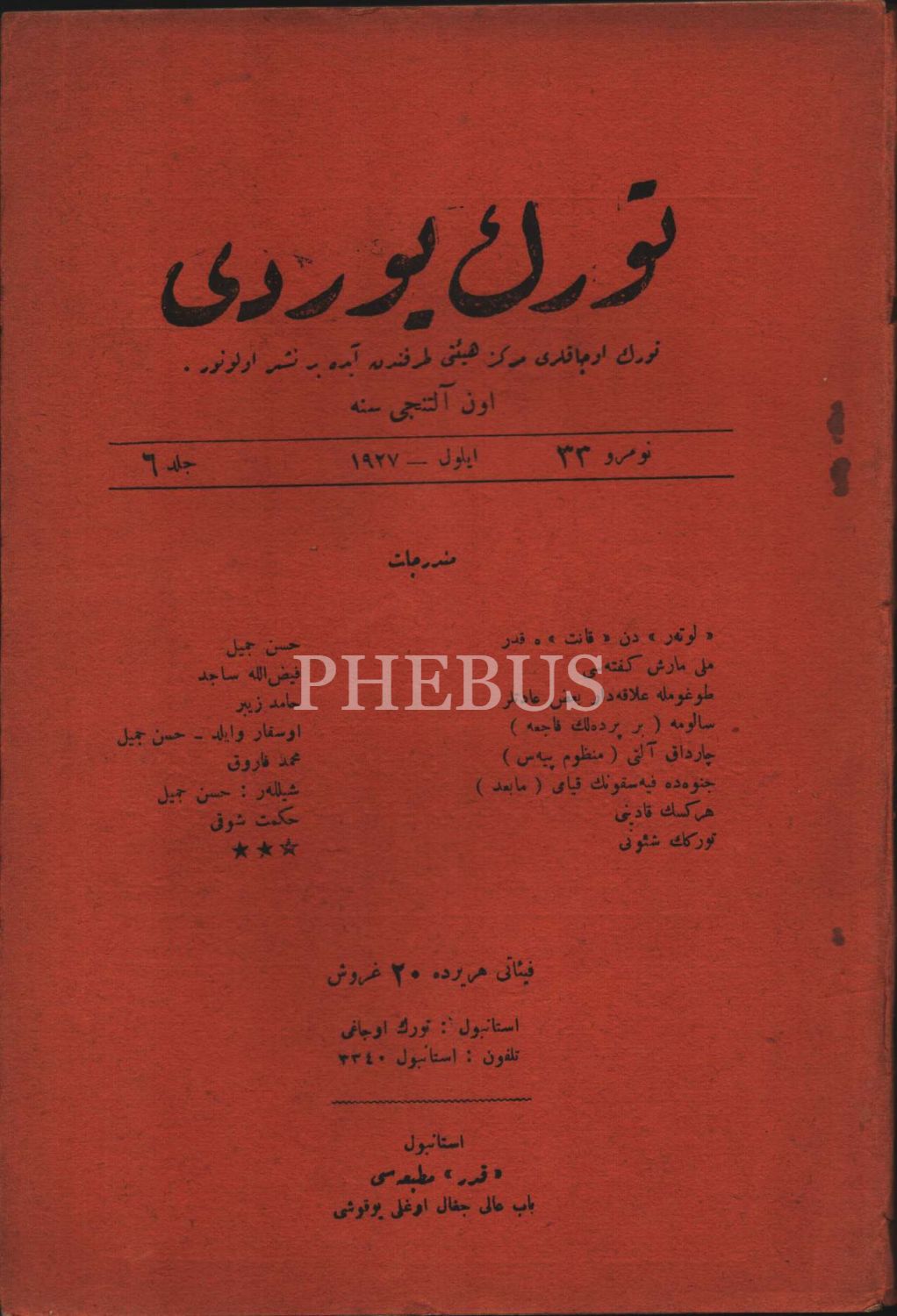 TÜRK YURDU dergisinin Eylül 1927 tarihli 33. sayısı, 16x24 cm